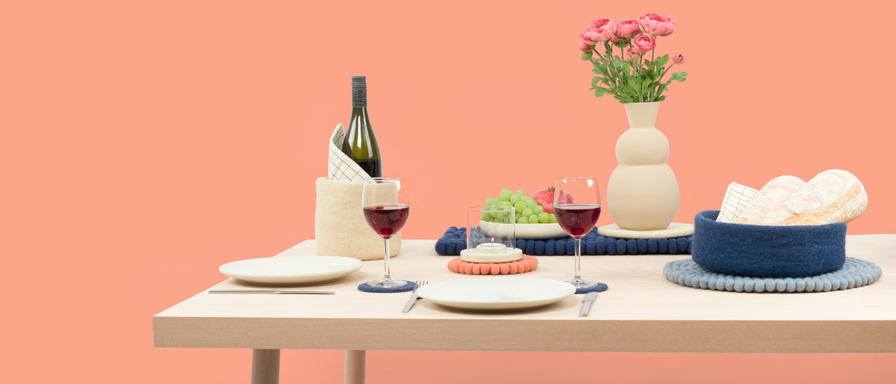 Les petits accessoires de myfelt façonnent subtilement l'atmosphère de la salle à manger. Les dessous de plat et de verre de haute qualité, disponibles en de nombreuses variantes, apportent non seulement de la couleur à la table, mais se révèlent également particulièrement fonctionnels et durables. Les dessous de verre myfelt sont fabriqués en pure laine vierge et protègent ainsi les surfaces sensibles comme le bois et le verre des taches et des rayures.