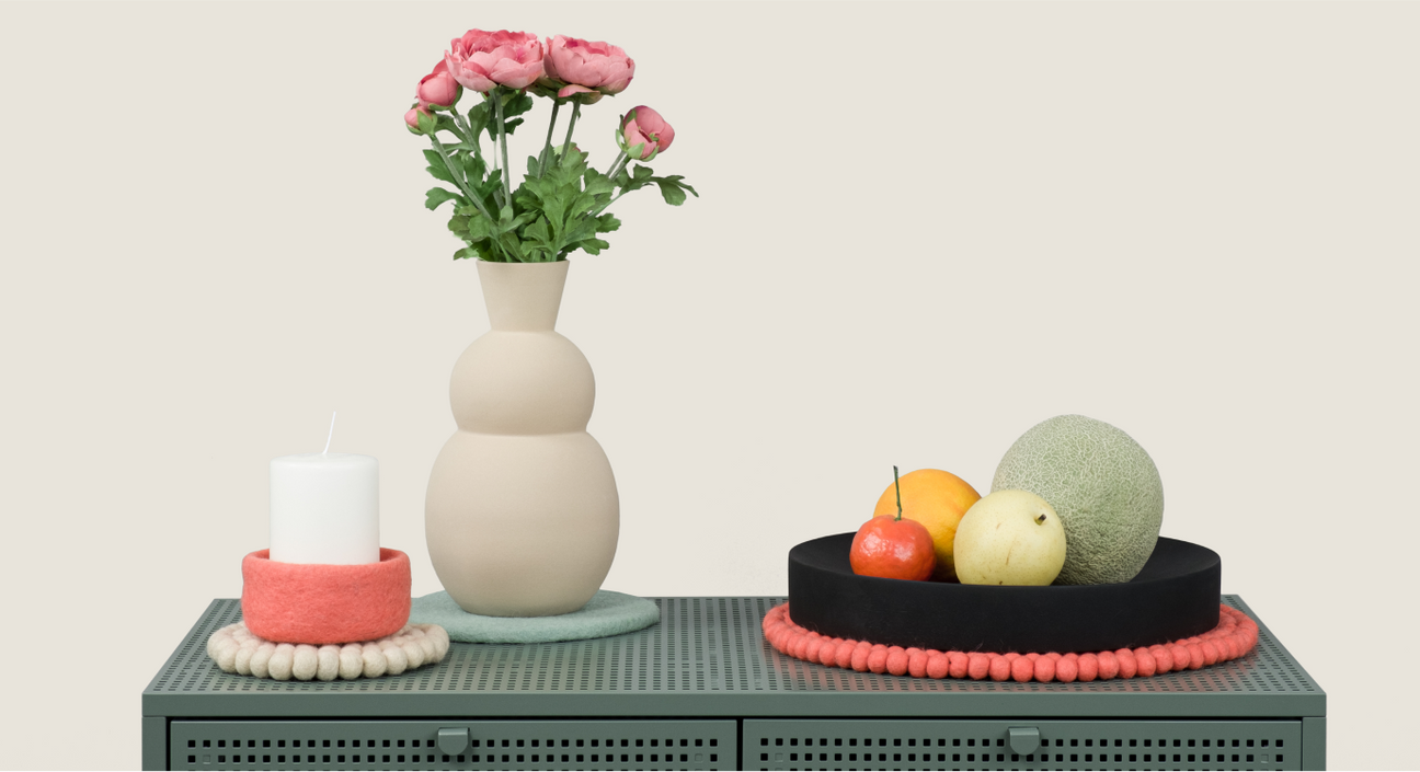 Les dessous de verre myfelt sont idéaux comme base décorative. Les objets du quotidien tels que les smartphones, les lunettes ou même les bijoux peuvent y être placés, protégeant ainsi la surface de votre mobilier. Les dessous de verre en feutre doux sont disponibles dans une variété de couleurs et de tailles. Ils sont fabriqués en pure laine vierge de Nouvelle-Zélande et sont fabriqués à la main. En tant qu'accessoires élégants dans la chambre, les dessous de verre sont particulièrement pratiques, car ils sont naturellement hydrofuges et antisalissures et peuvent être utilisés des deux côtés.