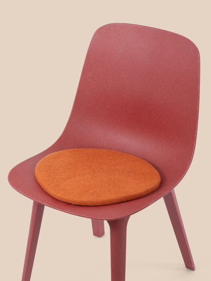 Ronde, galette d’assise plate orange en laine vierge pure.