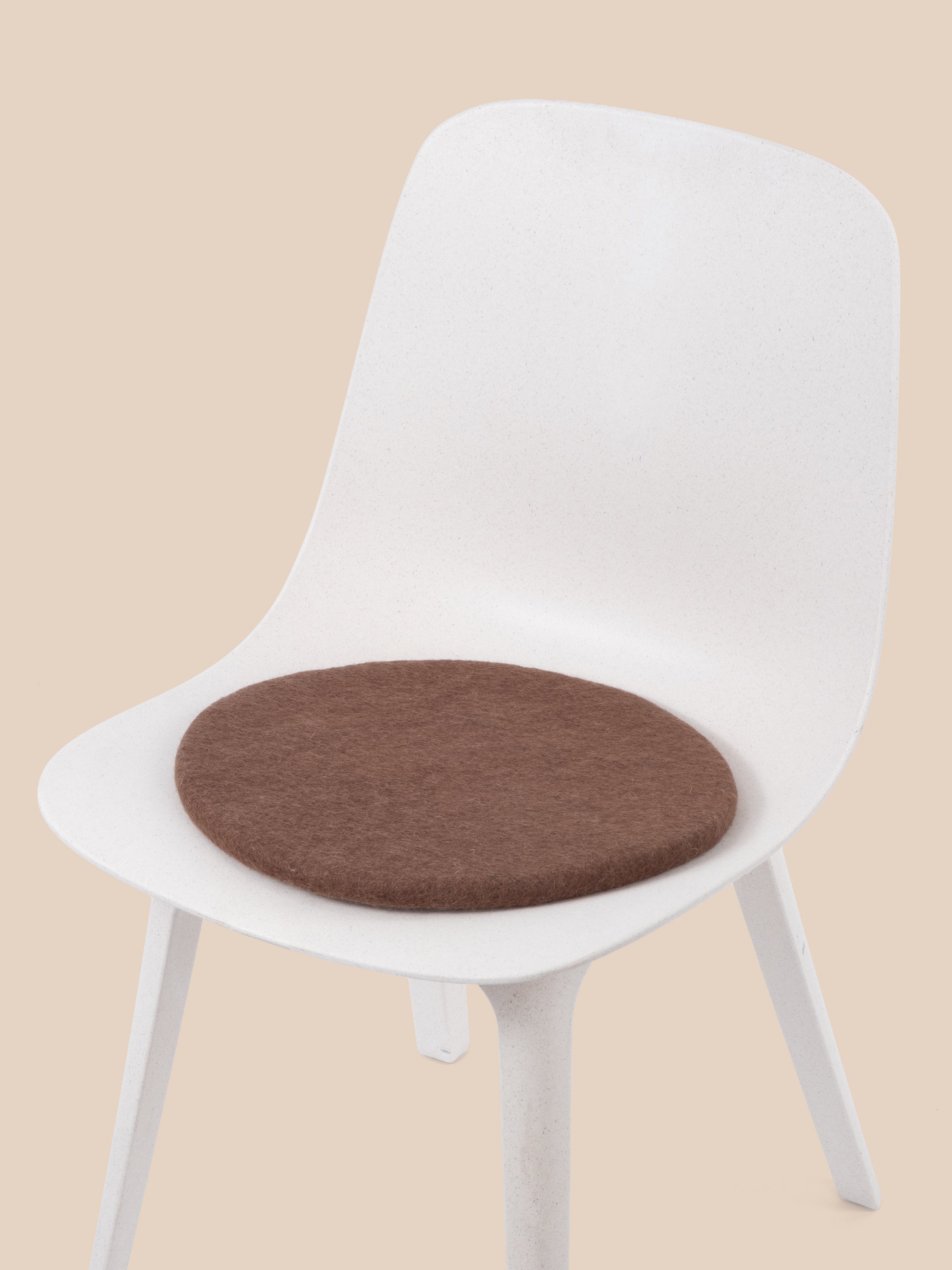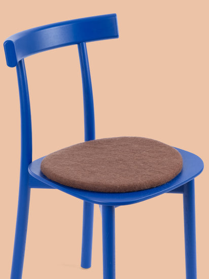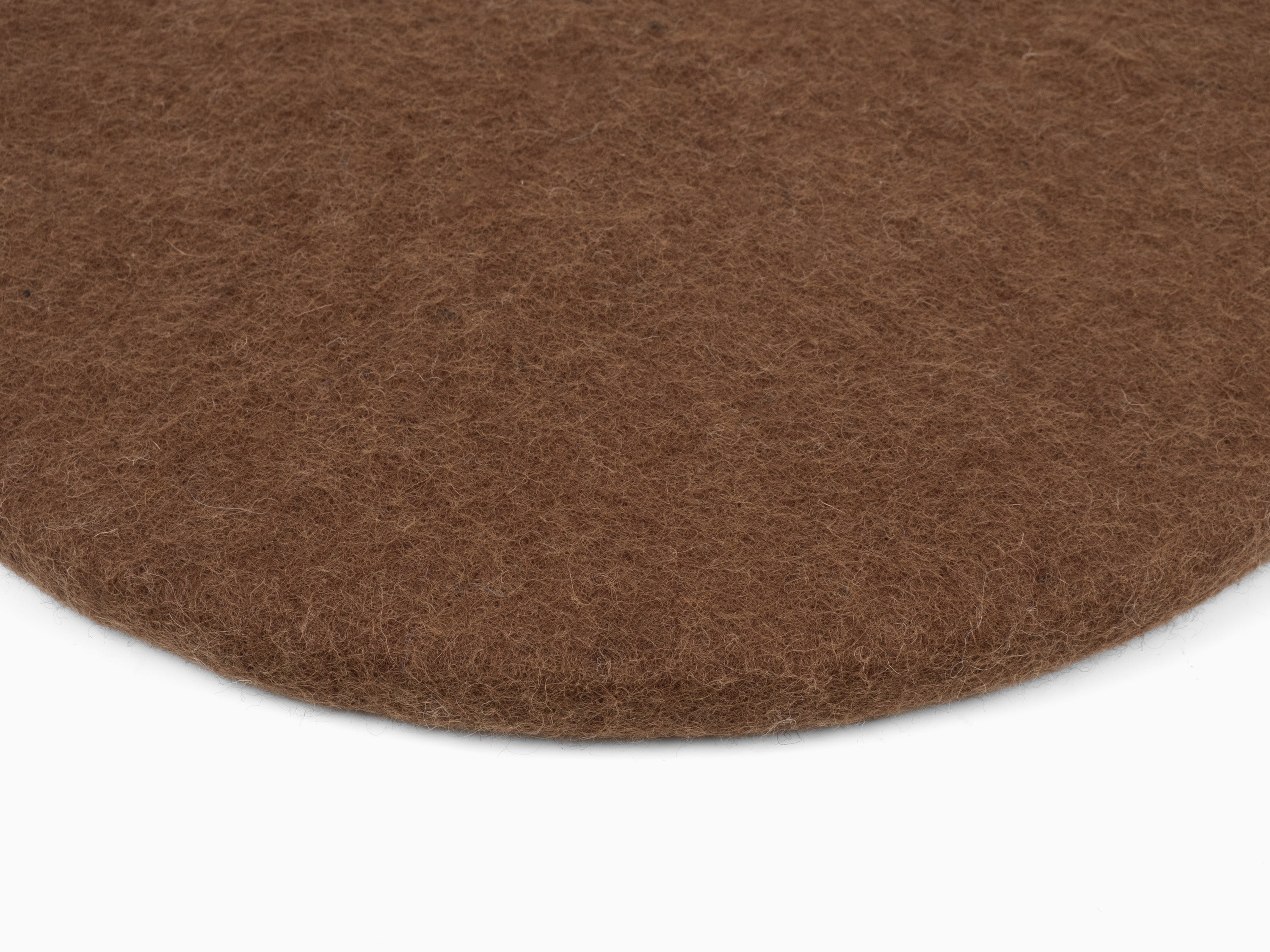 Ronde, galette d’assise plate marron en laine vierge pure.