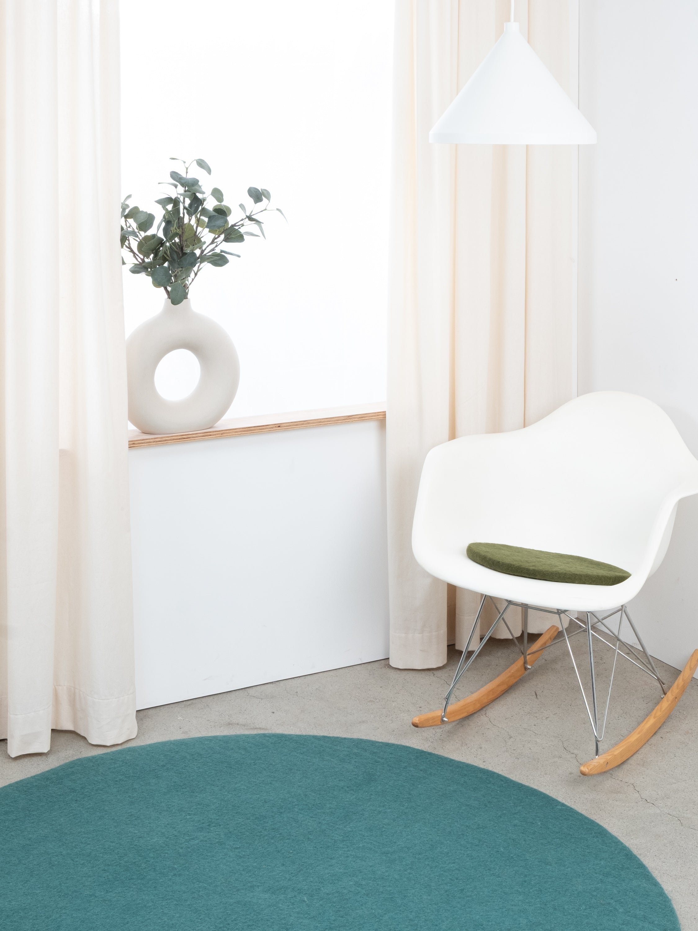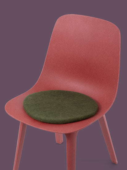 Ronde, galette d’assise plate vert foncé en laine vierge pure.