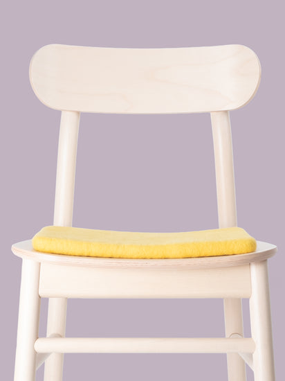 Carrée, galette d’assise plate jaune en laine vierge pure.