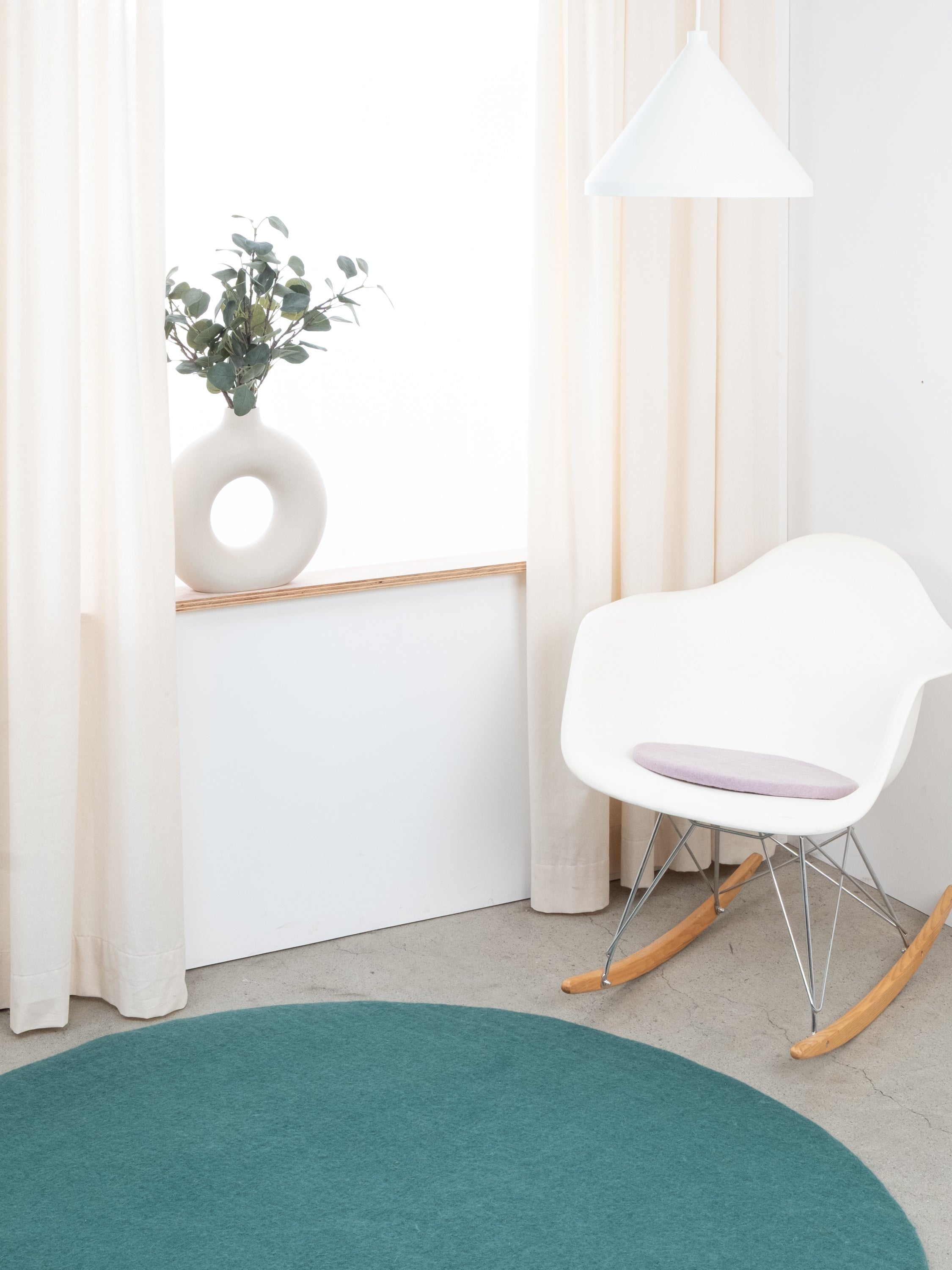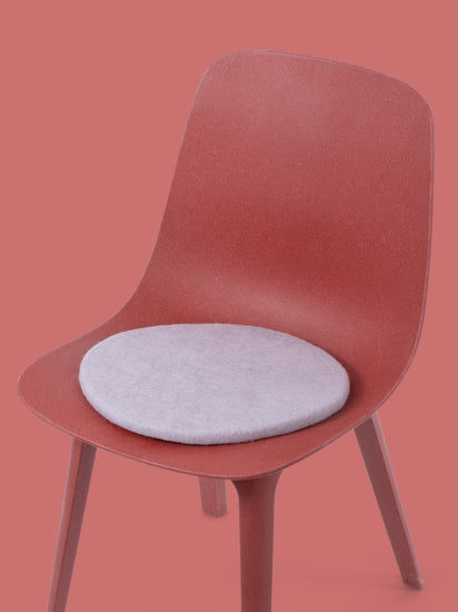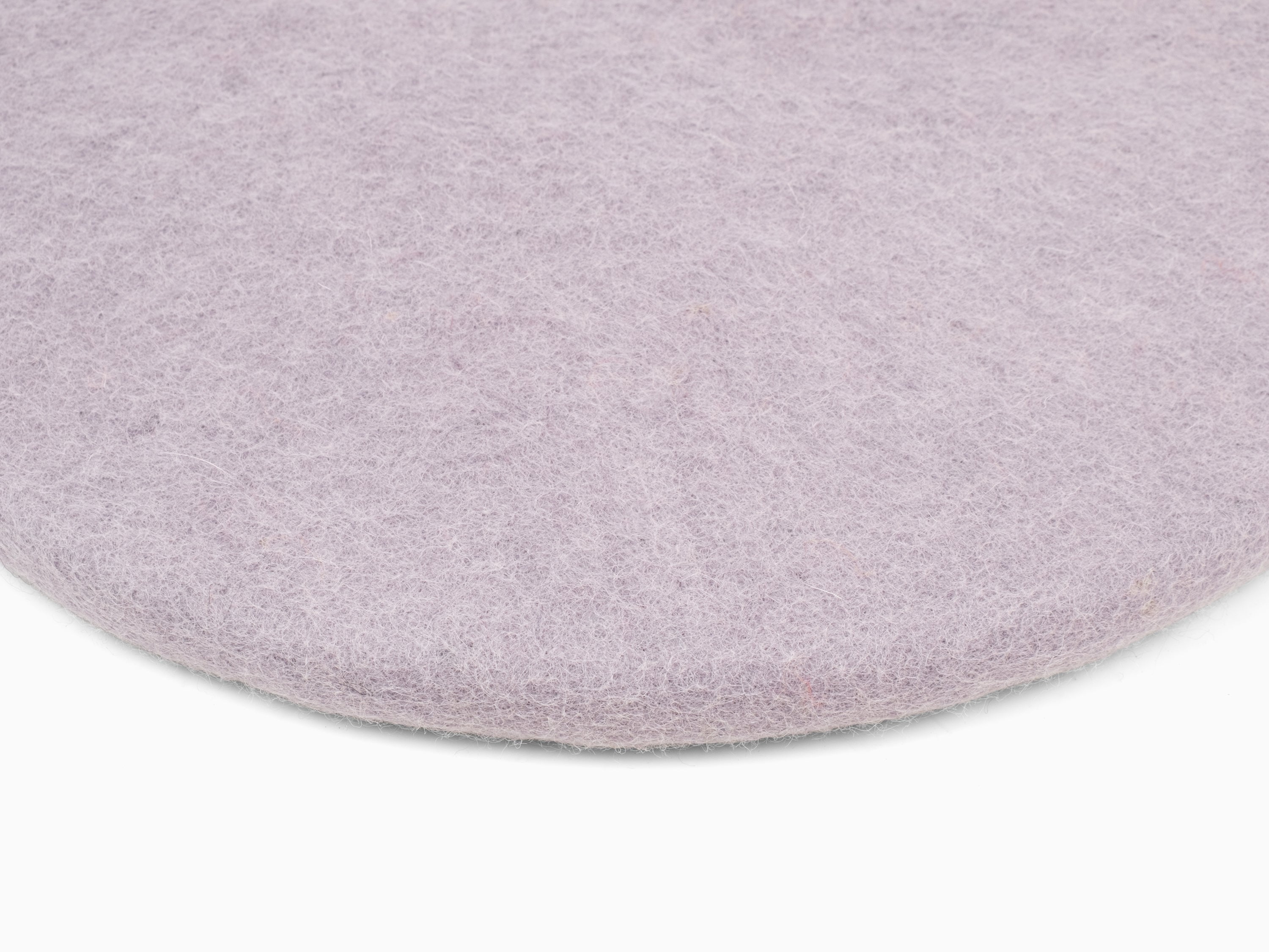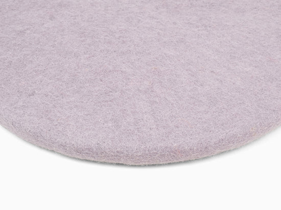 Ronde, galette d’assise plate lilas clair en laine vierge pure.