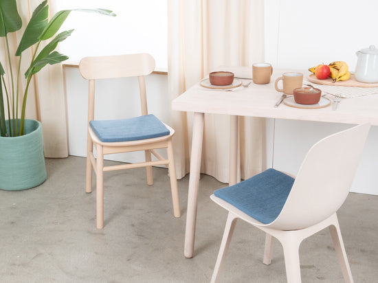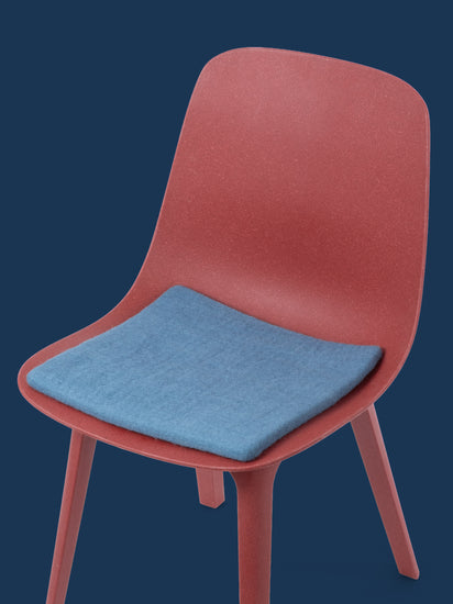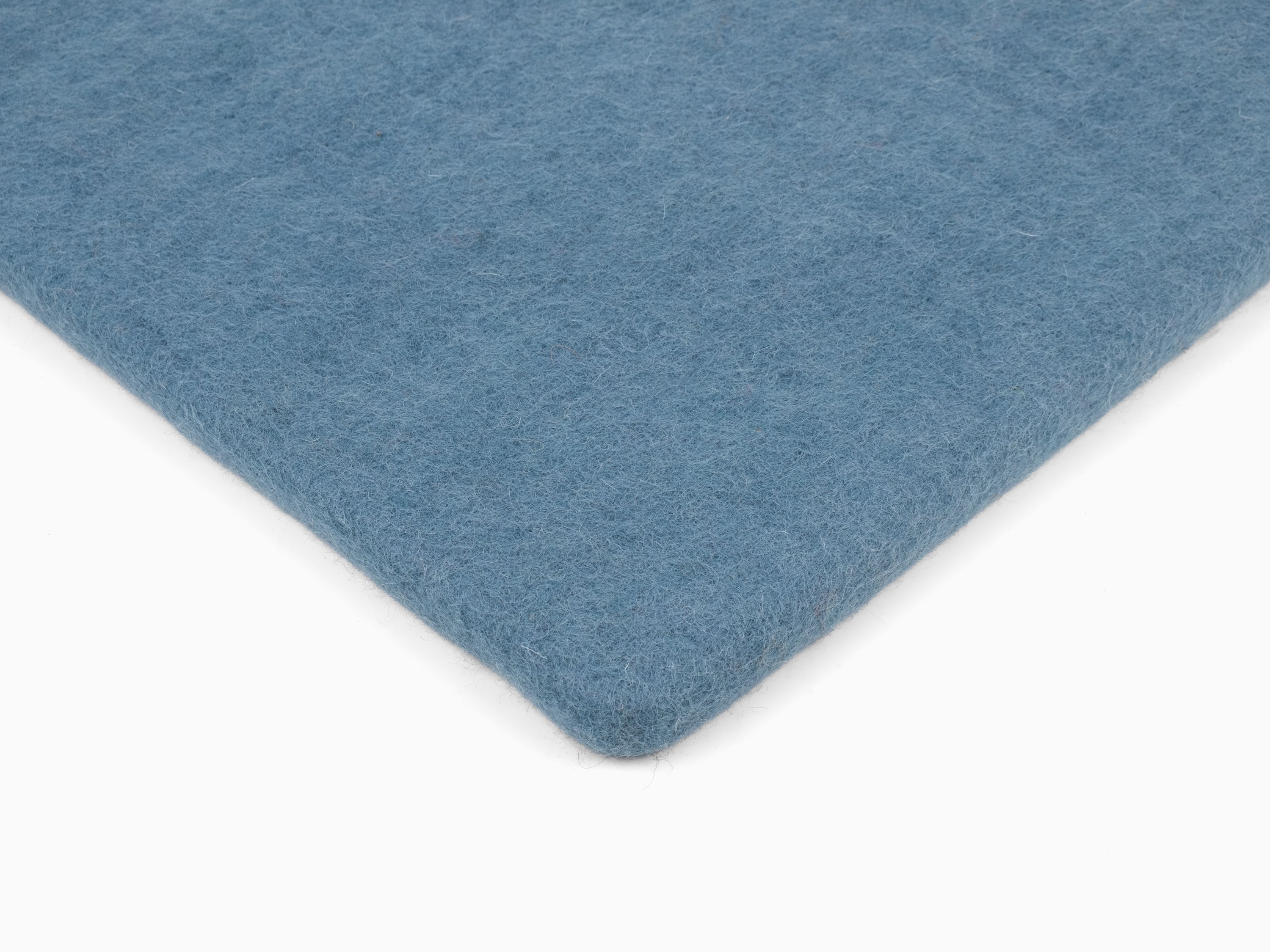 Carrée, galette d’assise plate bleue en laine vierge pure.