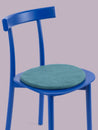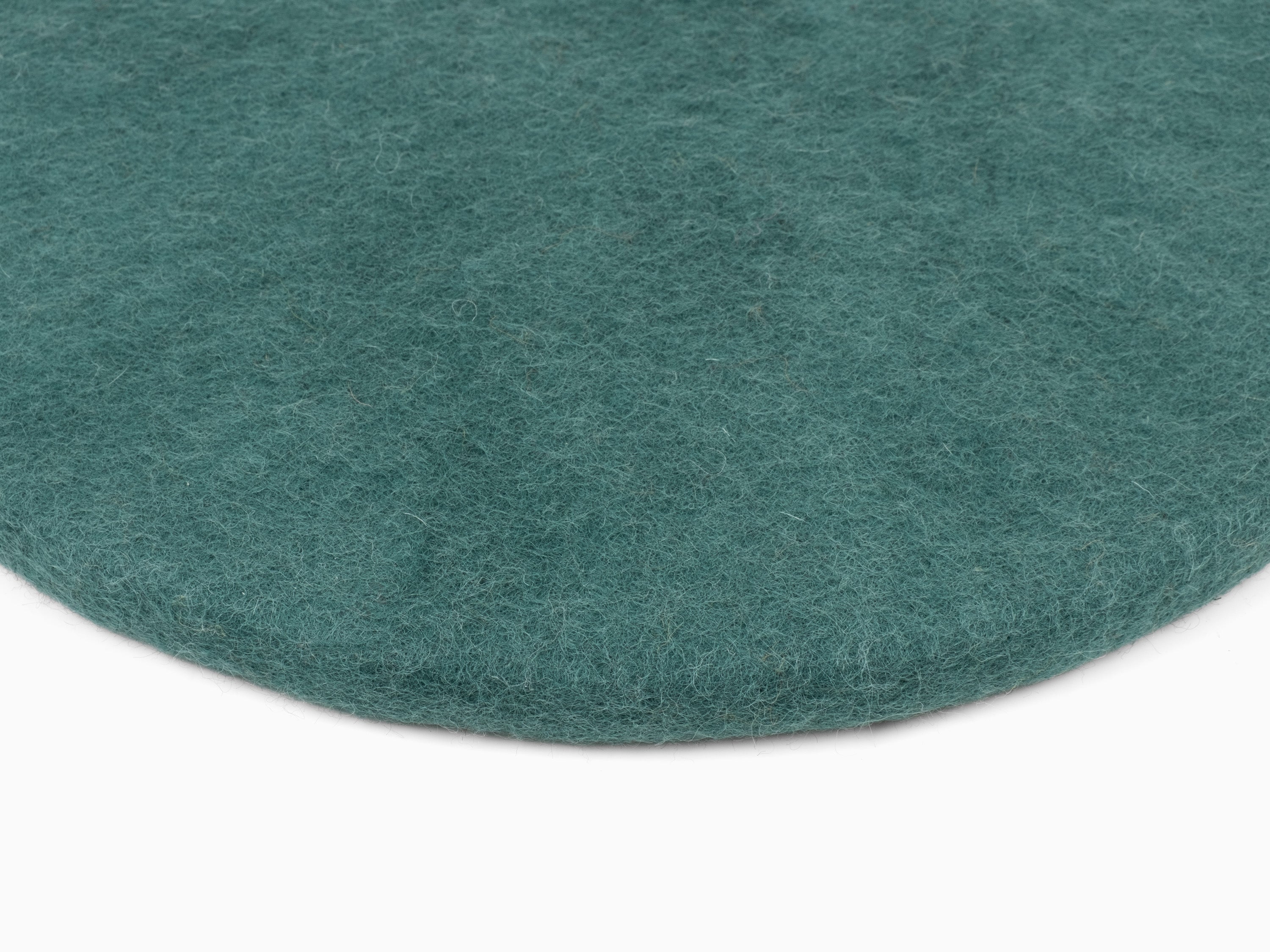 Ronde, galette d’assise plate couleur pétrole en laine vierge pure.