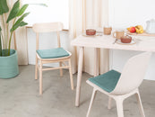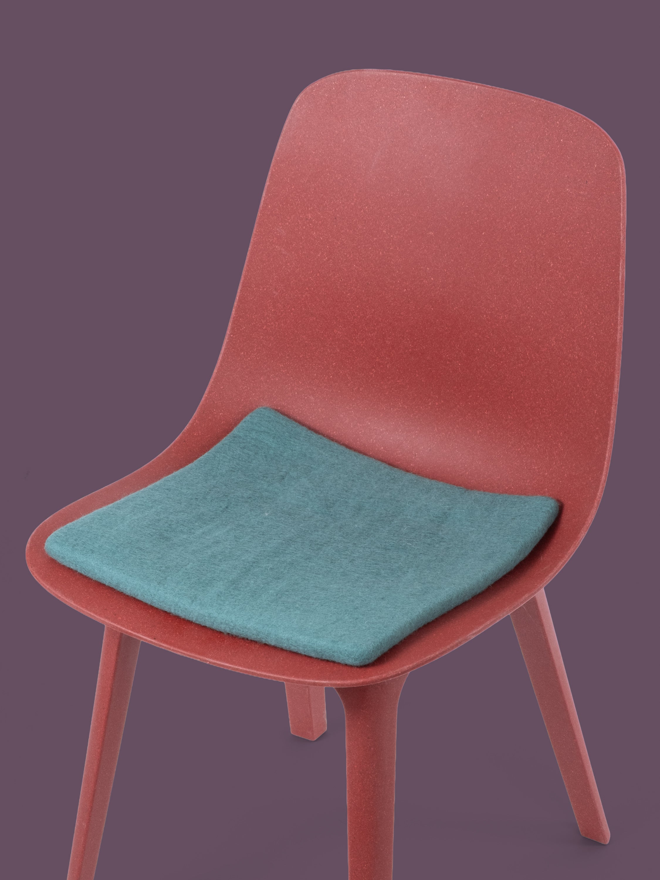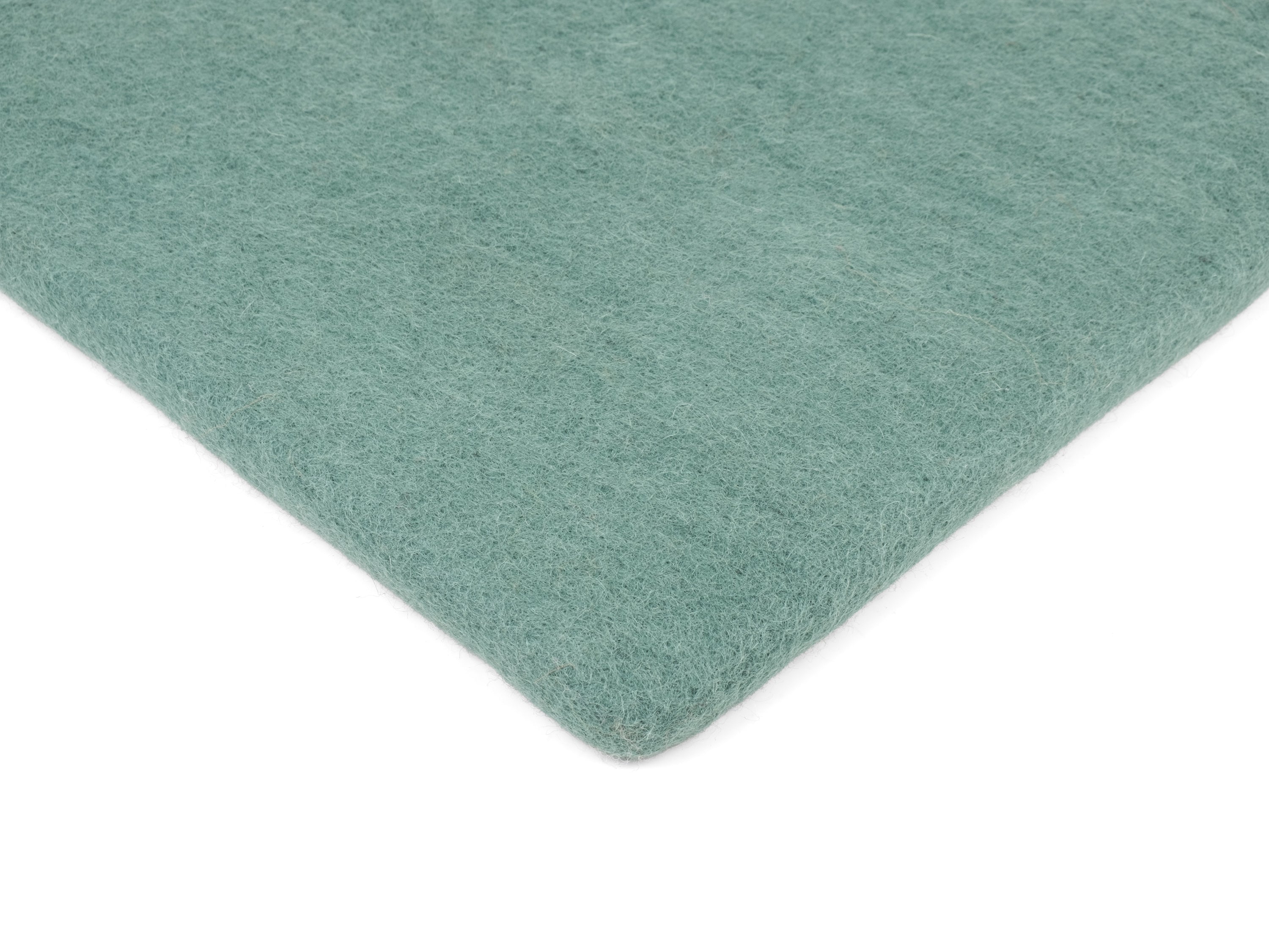 Carrée, galette d’assise plate couleur aqua en laine vierge pure.
