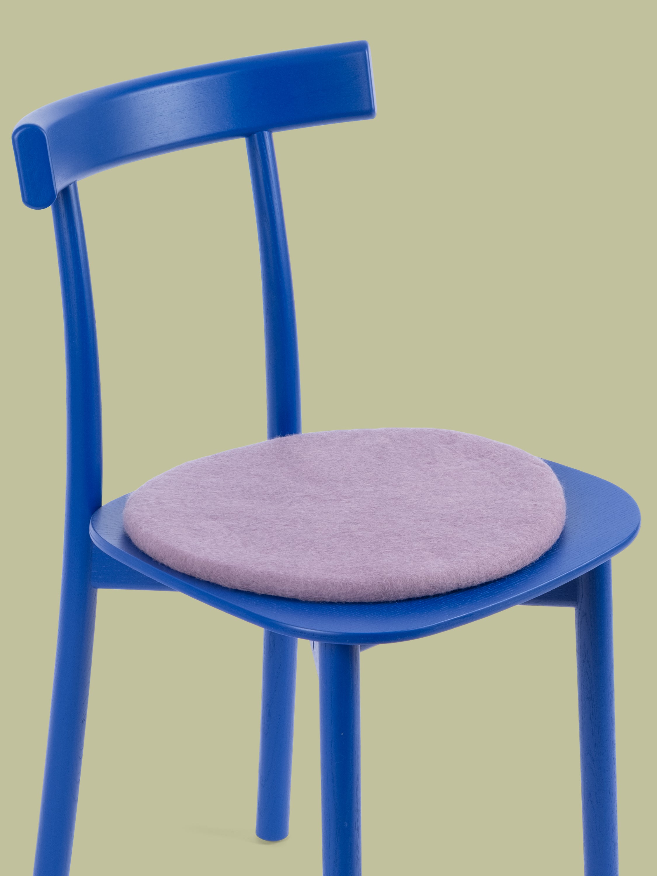 Ronde, galette d’assise plate gris lilas en laine vierge pure.