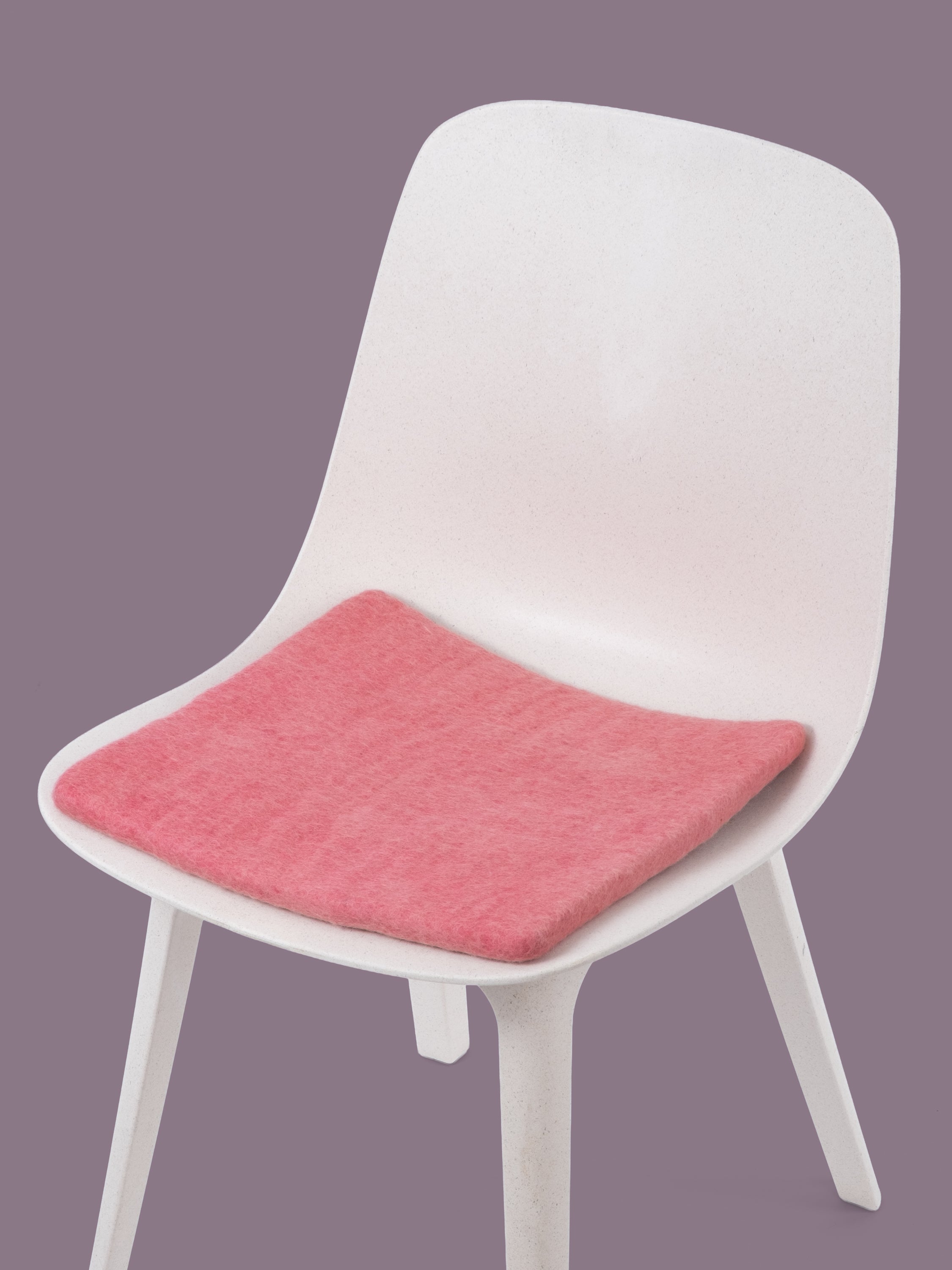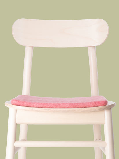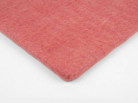 Carrée, galette d’assise plate rose corail en laine vierge pure.
