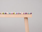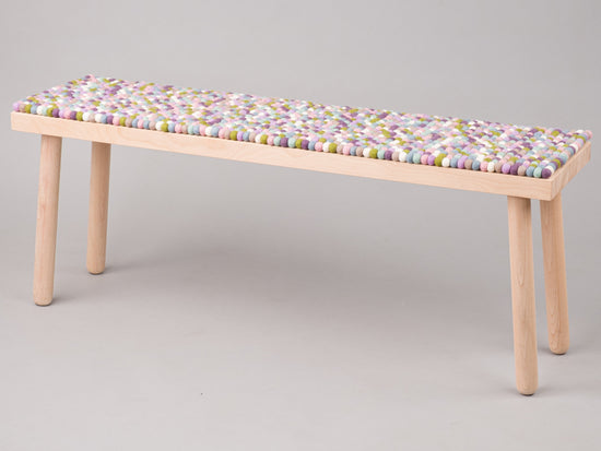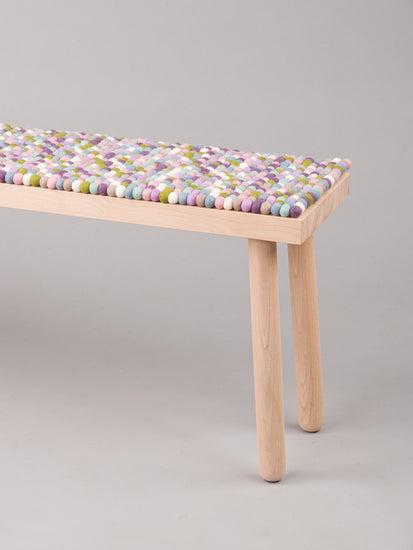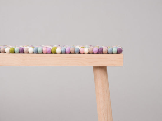 Coussin de banc multicolore en boules de feutre fabriqué en laine vierge selon vos dimensions.