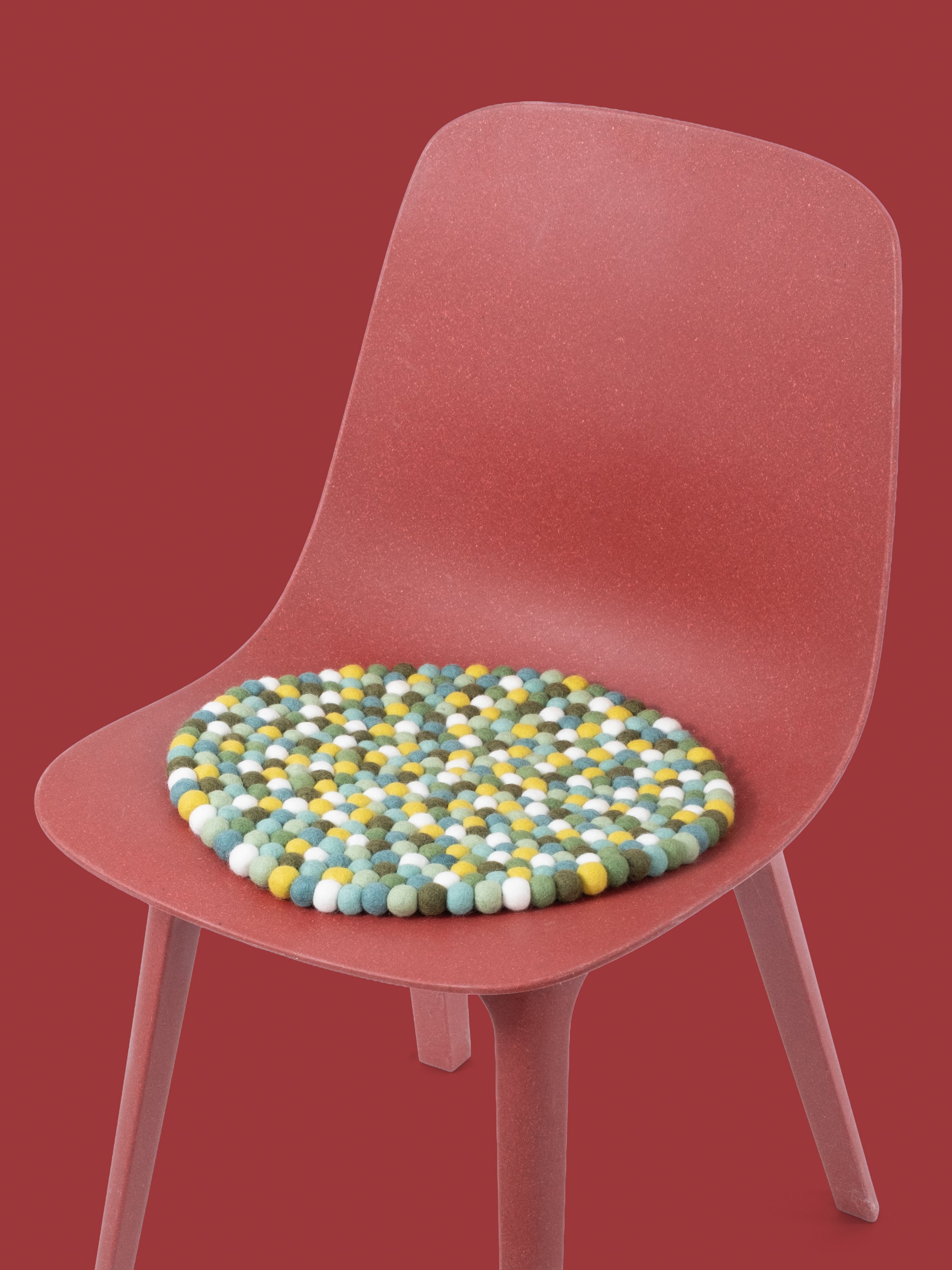 Ronde, galette d’assise multicolore en laine vierge pure.