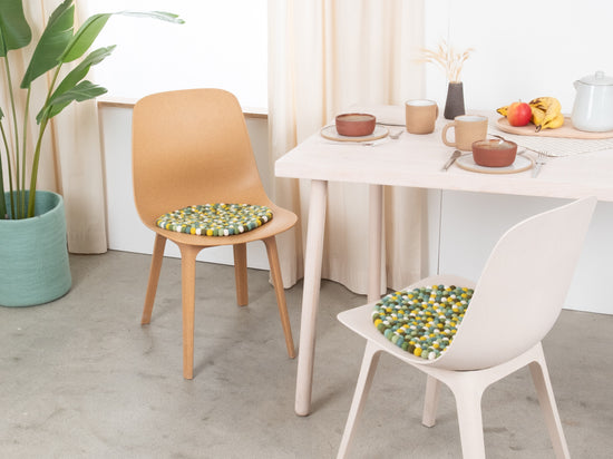 La galette d’assise multicolore Finn apporte chaleur et douceur à votre chaise préférée. Fabriquée en laine vierge pure, confectionnée à la main au Népal et produite dans des conditions équitables. Les galettes d’assise myfelt sont hydrofuges, résistantes aux salissures et utilisables des deux côtés.
