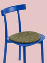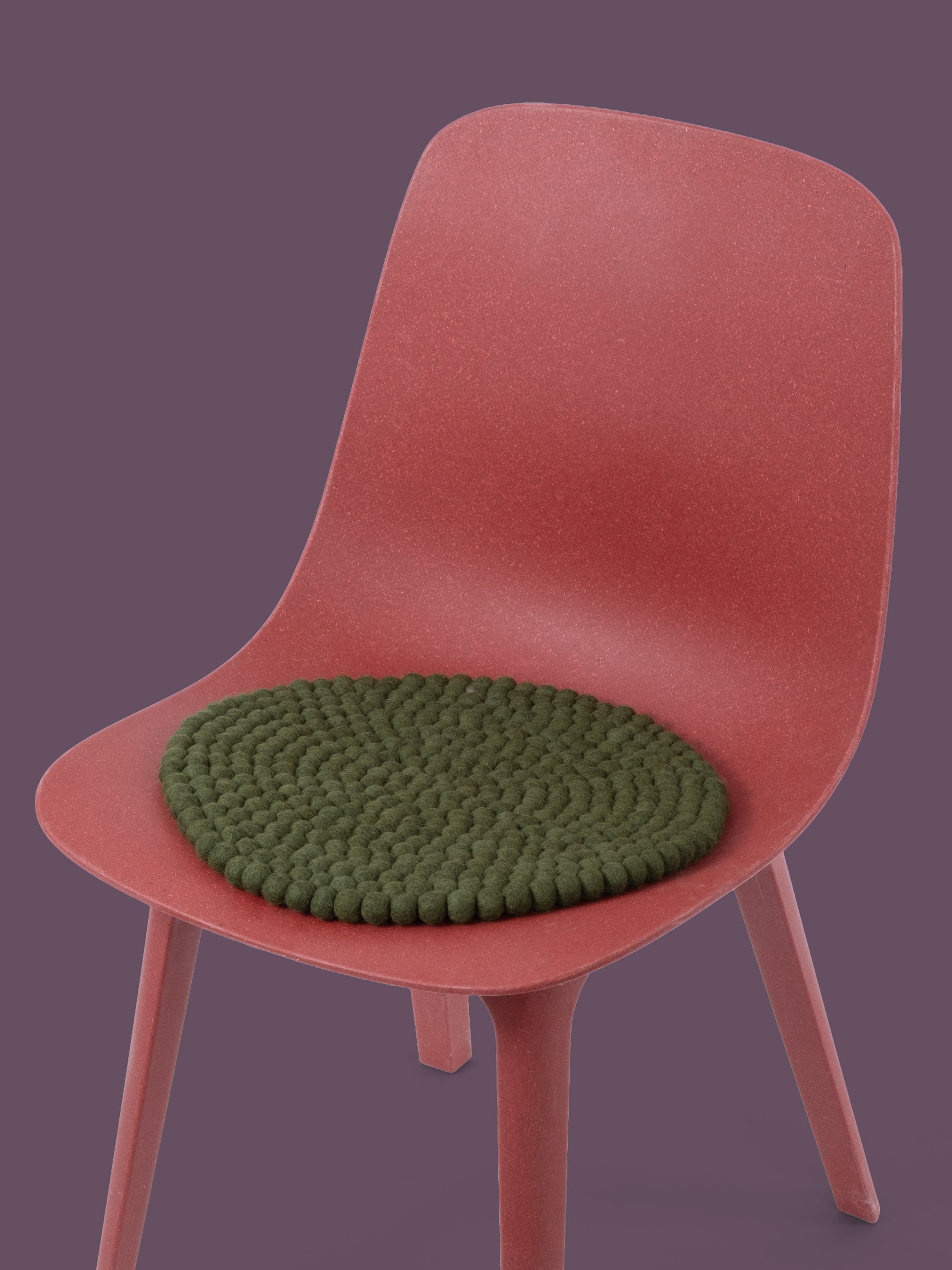 Ronde, galette d’assise vert foncé en laine vierge pure.
