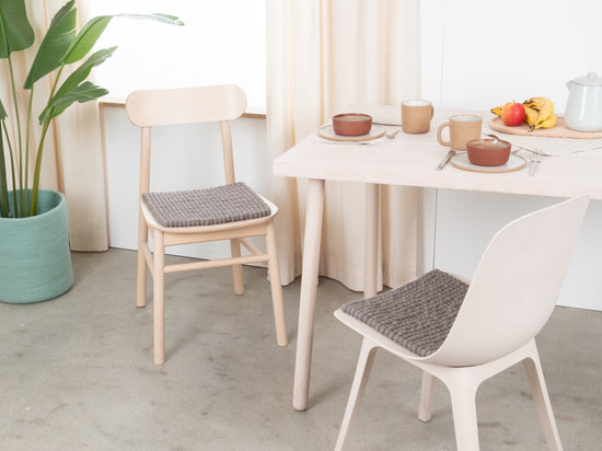Carrée, galette d’assise grise en laine vierge pure.
