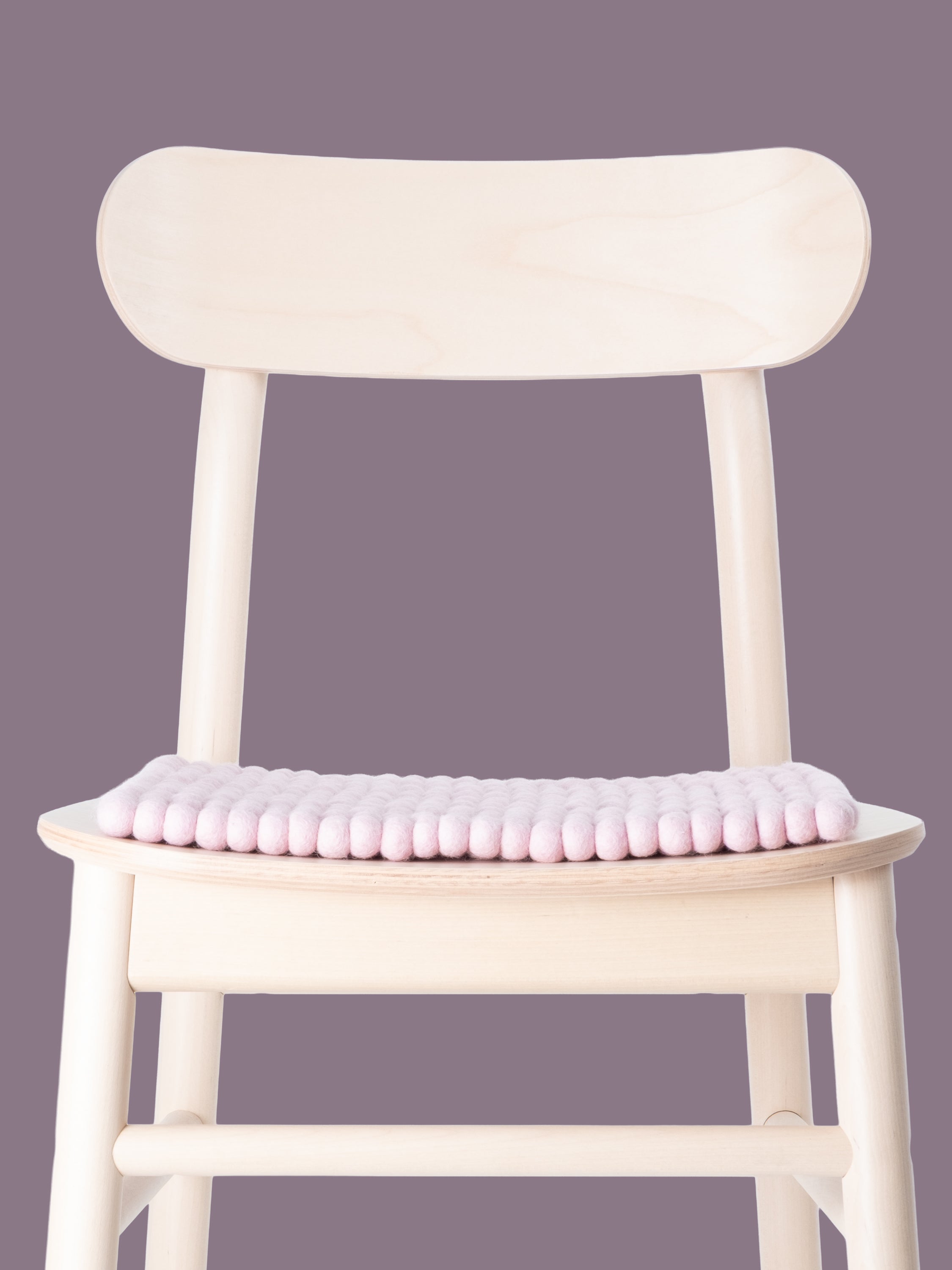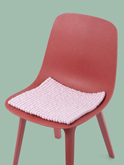 Carrée, galette d’assise rose pâle en laine vierge pure.