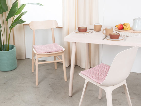 La galette d’assise rose Mona apporte chaleur et douceur à votre chaise préférée. Fabriquée en laine vierge pure, confectionnée à la main au Népal et produite dans des conditions équitables. Les galettes d’assise myfelt sont hydrofuges, résistantes aux salissures et utilisables des deux côtés.
