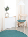 Carrée, galette d’assise couleur pétrole en laine vierge pure.