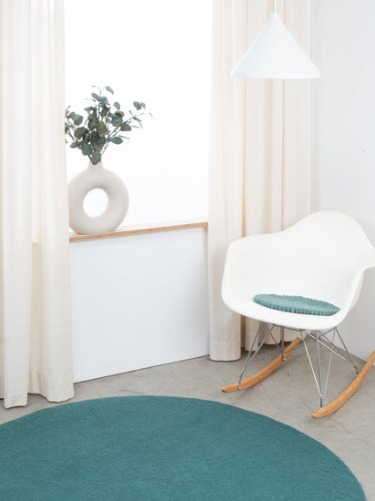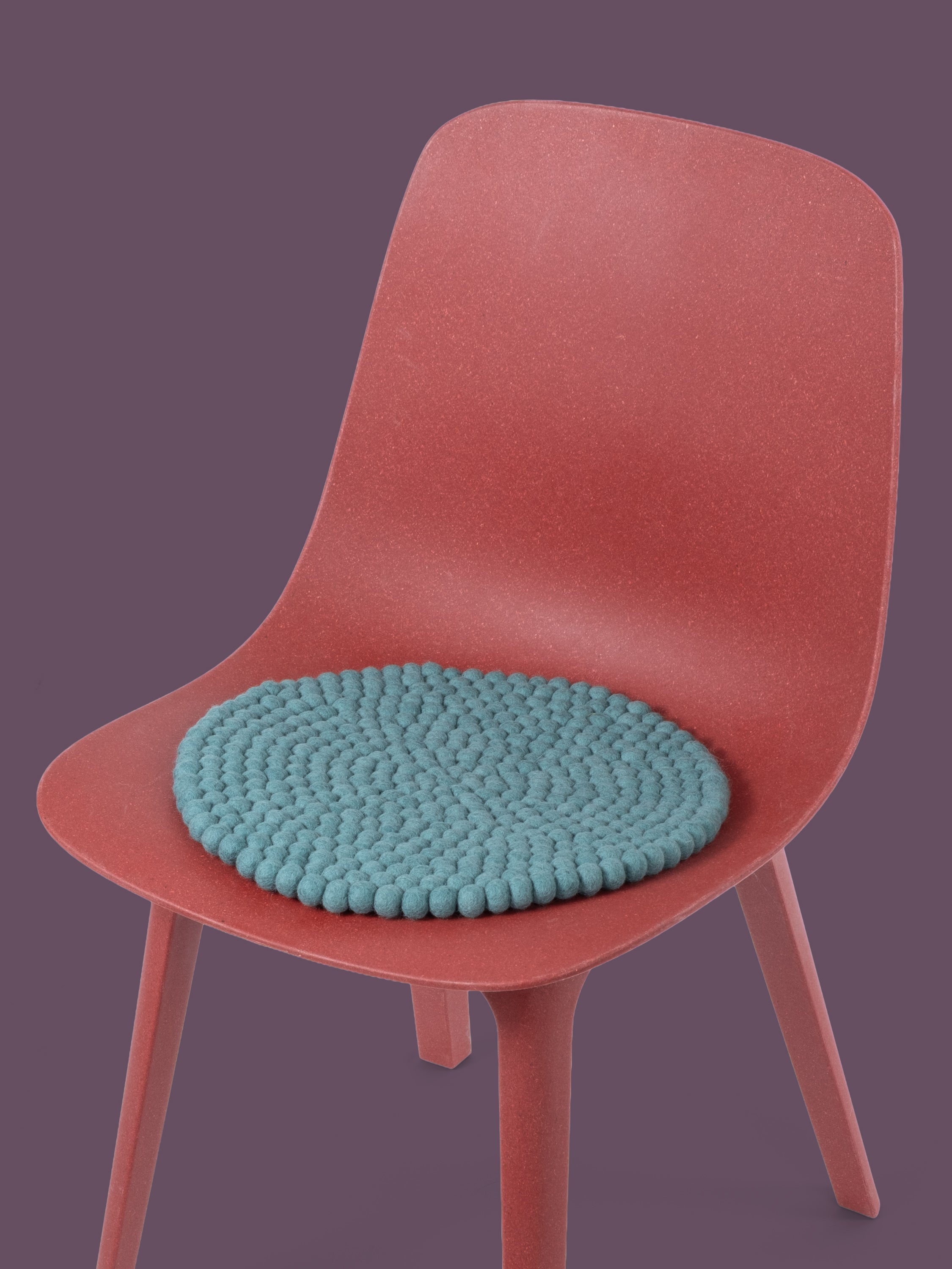 Ronde, galette d’assise couleur aqua en laine vierge pure.