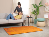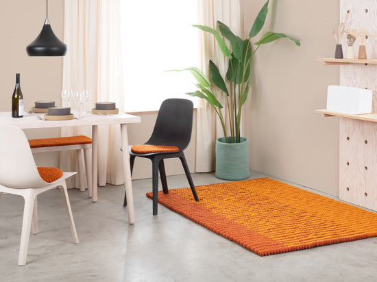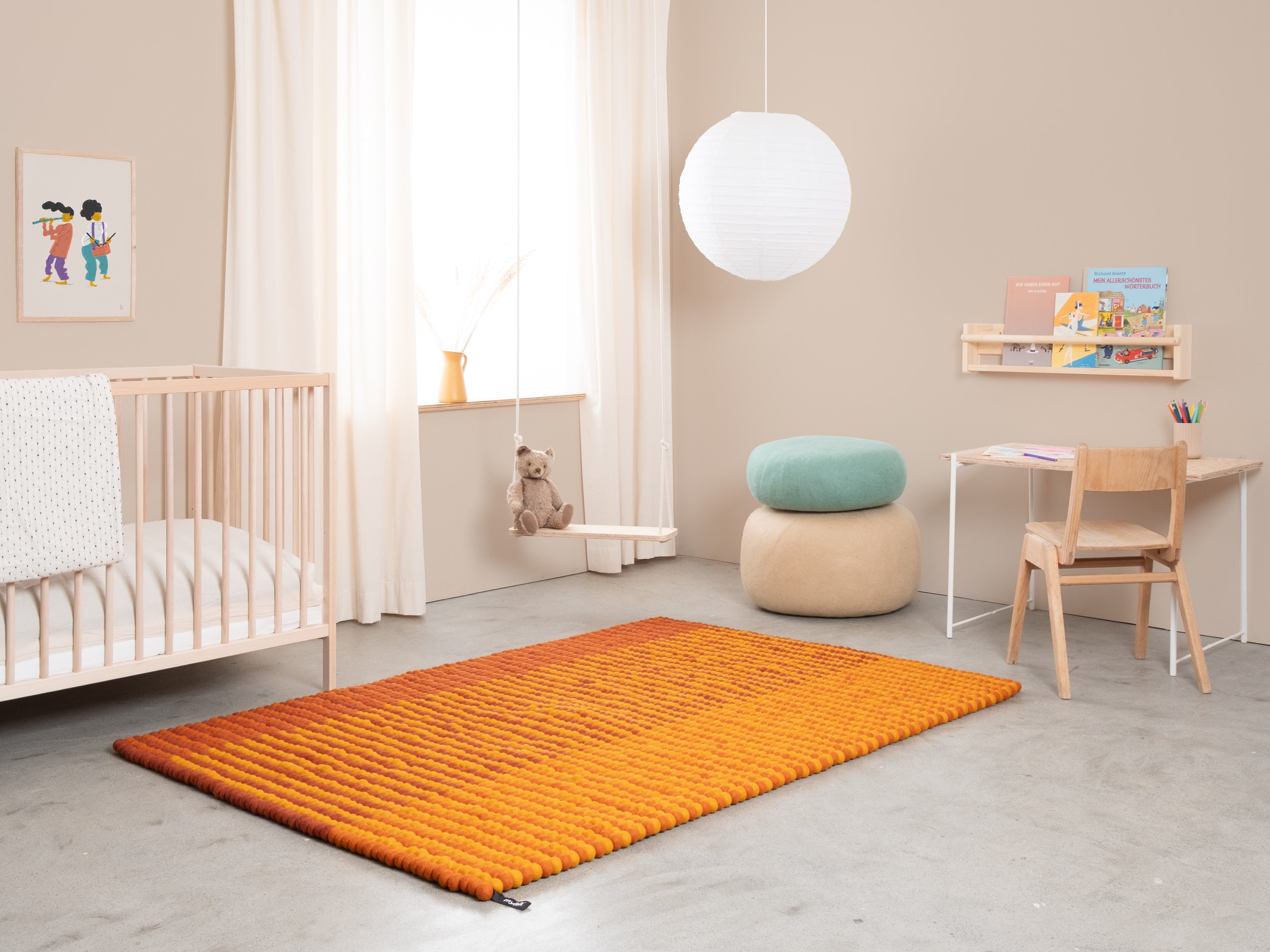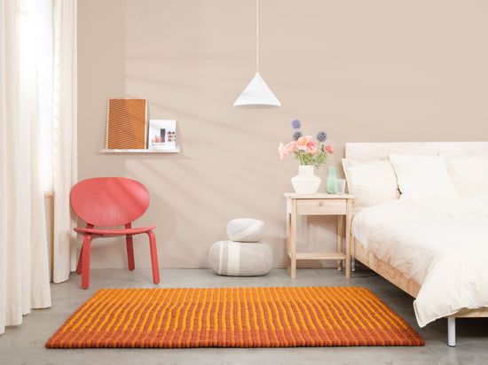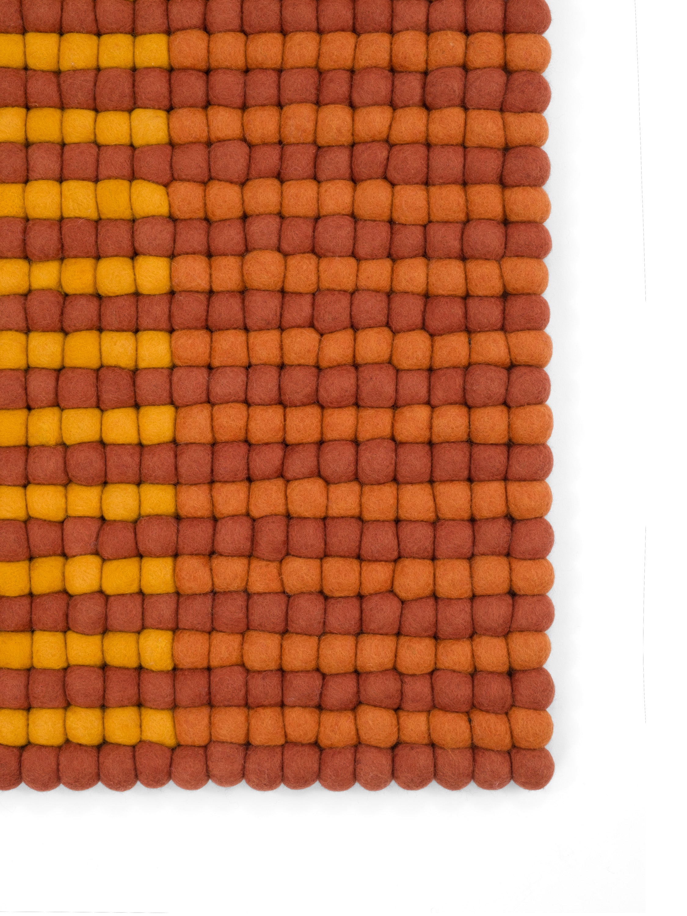 Orange doré. Ambre. Une touche de braise. Dawn est le premier rayon de lumière sur un sol chaud. Un tapis qui illumine les pièces. Pour tous ceux qui ont les pieds sur terre, mais la tête tournée vers le soleil.