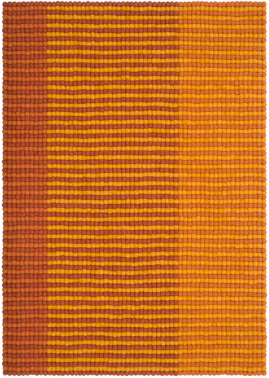 Tapis rectangulaire à boules de feutre, fabriqué en pure laine vierge.