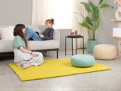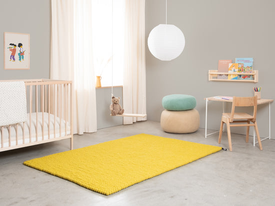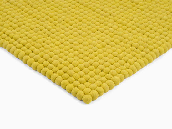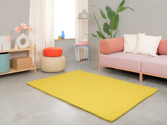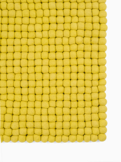 Tapis rectangulaire en boules de feutre, fabriqué en pure laine vierge.
