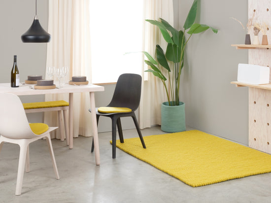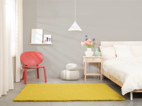 Kata est un tapis en boules de feutre d’un vert jaune frais. Lumineux, vital et plein d’énergie, il apporte du mouvement à la pièce. Que ce soit comme accent joyeux dans le salon ou comme point lumineux dans l’espace de travail. Kata apporte vitalité et légèreté. Doux, robuste et facile d’entretien. Fait main au Népal en pure laine vierge à 100 %.