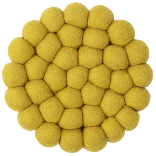 Tapis rond en boules de feutre, fabriqué en pure laine vierge.