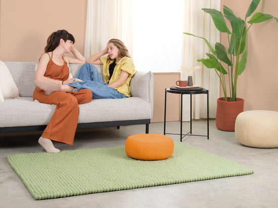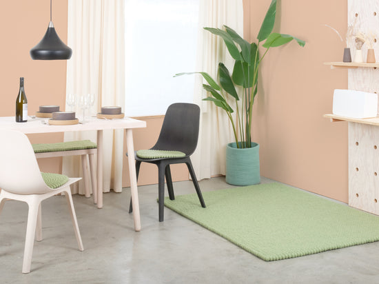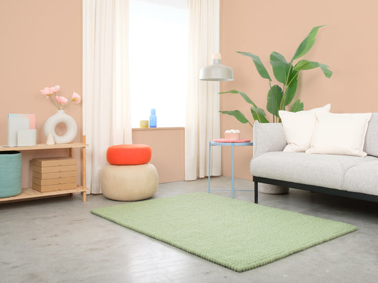 Lasse est un tapis en boules de feutre d’un doux vert sauge. Il apporte calme et légèreté à la pièce et s’harmonise avec le bois, le blanc et les tons naturels. Doux sous le pied, robuste au quotidien et naturellement anti-salissures. Fait main au Népal en pure laine vierge à 100 %.