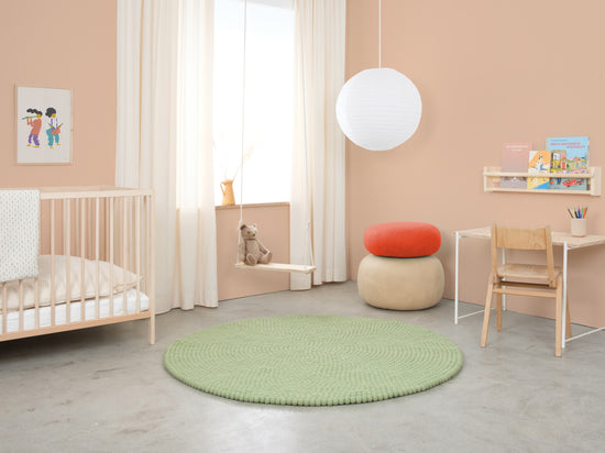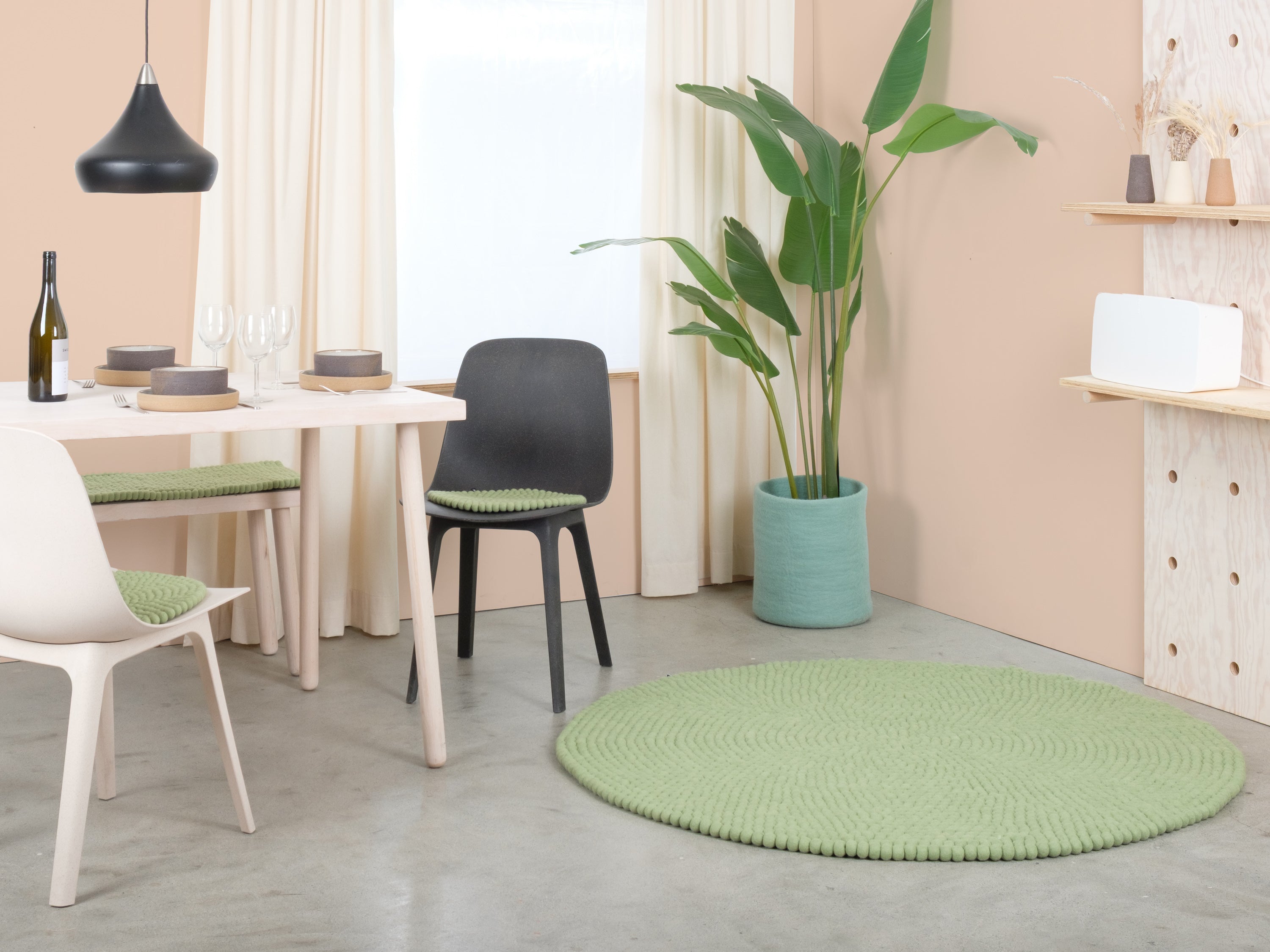 Lasse est un tapis en boules de feutre d’un doux vert sauge. Il apporte calme et légèreté à la pièce et s’harmonise avec le bois, le blanc et les tons naturels. Doux sous le pied, robuste au quotidien et naturellement anti-salissures. Fait main au Népal en pure laine vierge à 100 %.