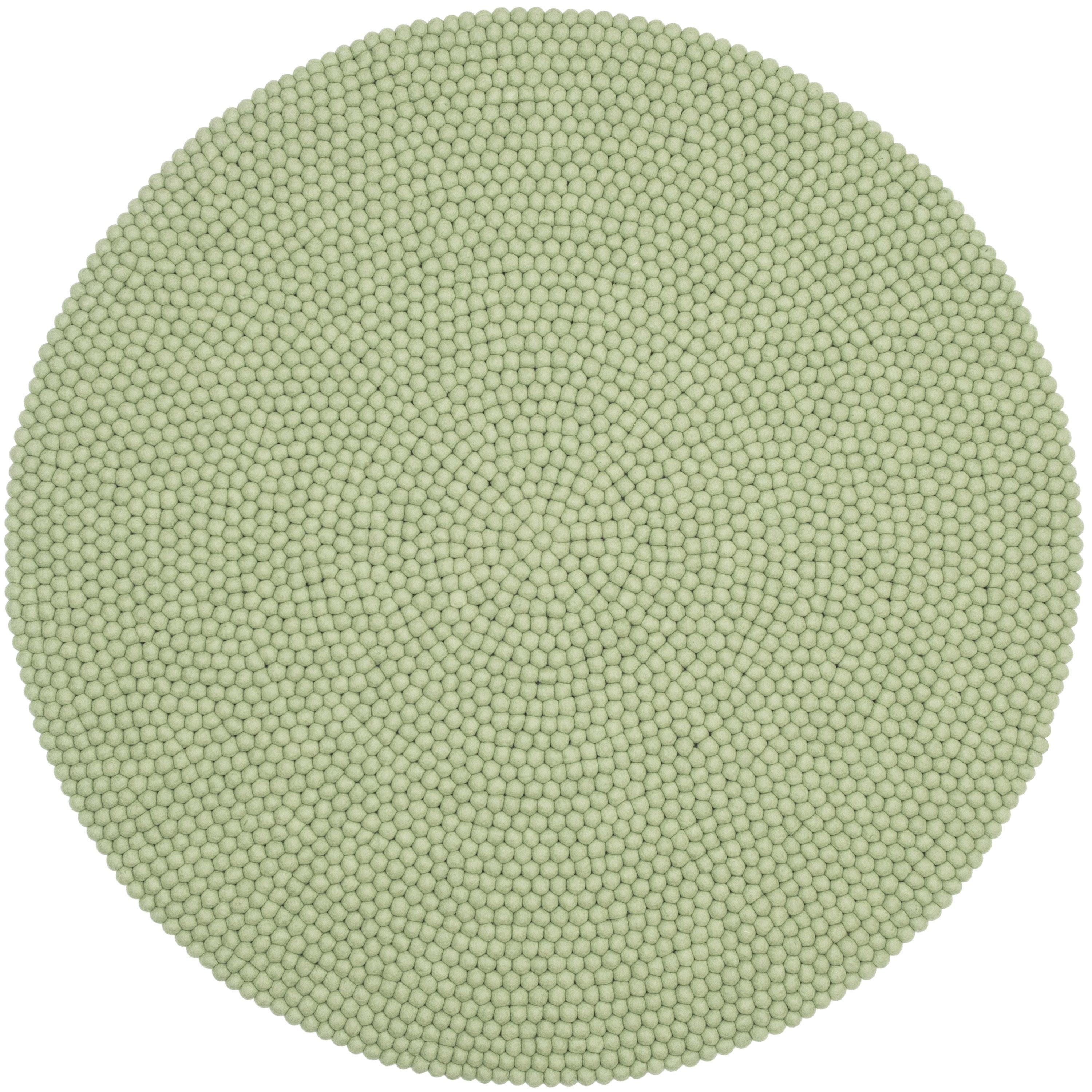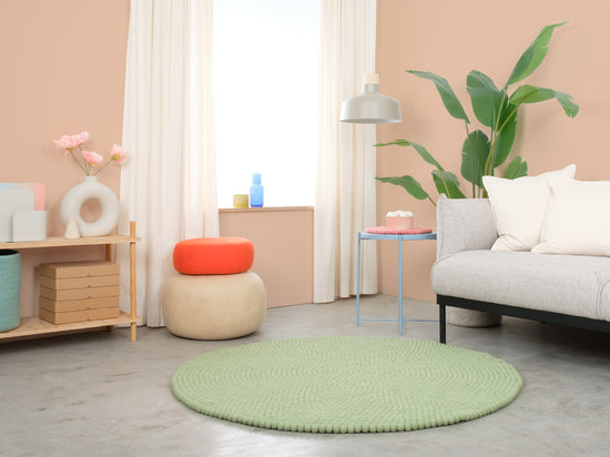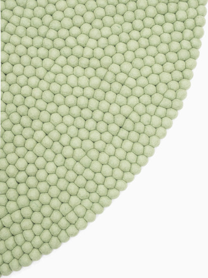 Tapis rond en boules de feutre, fabriqué en pure laine vierge.