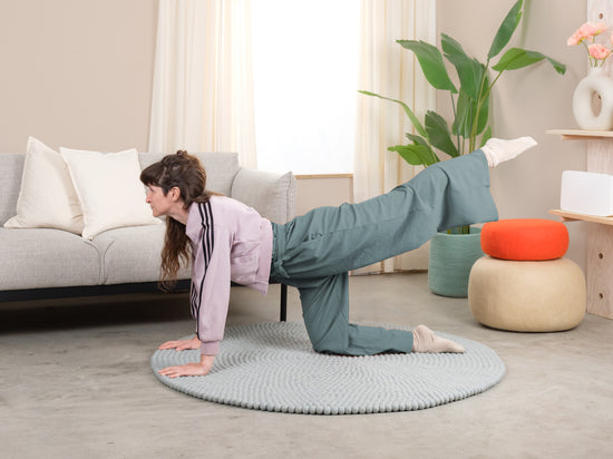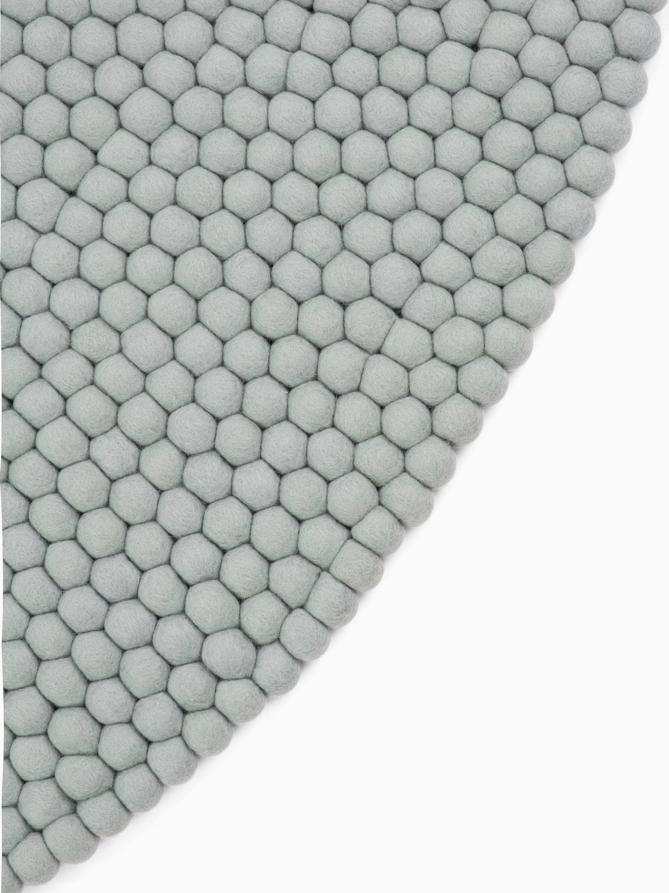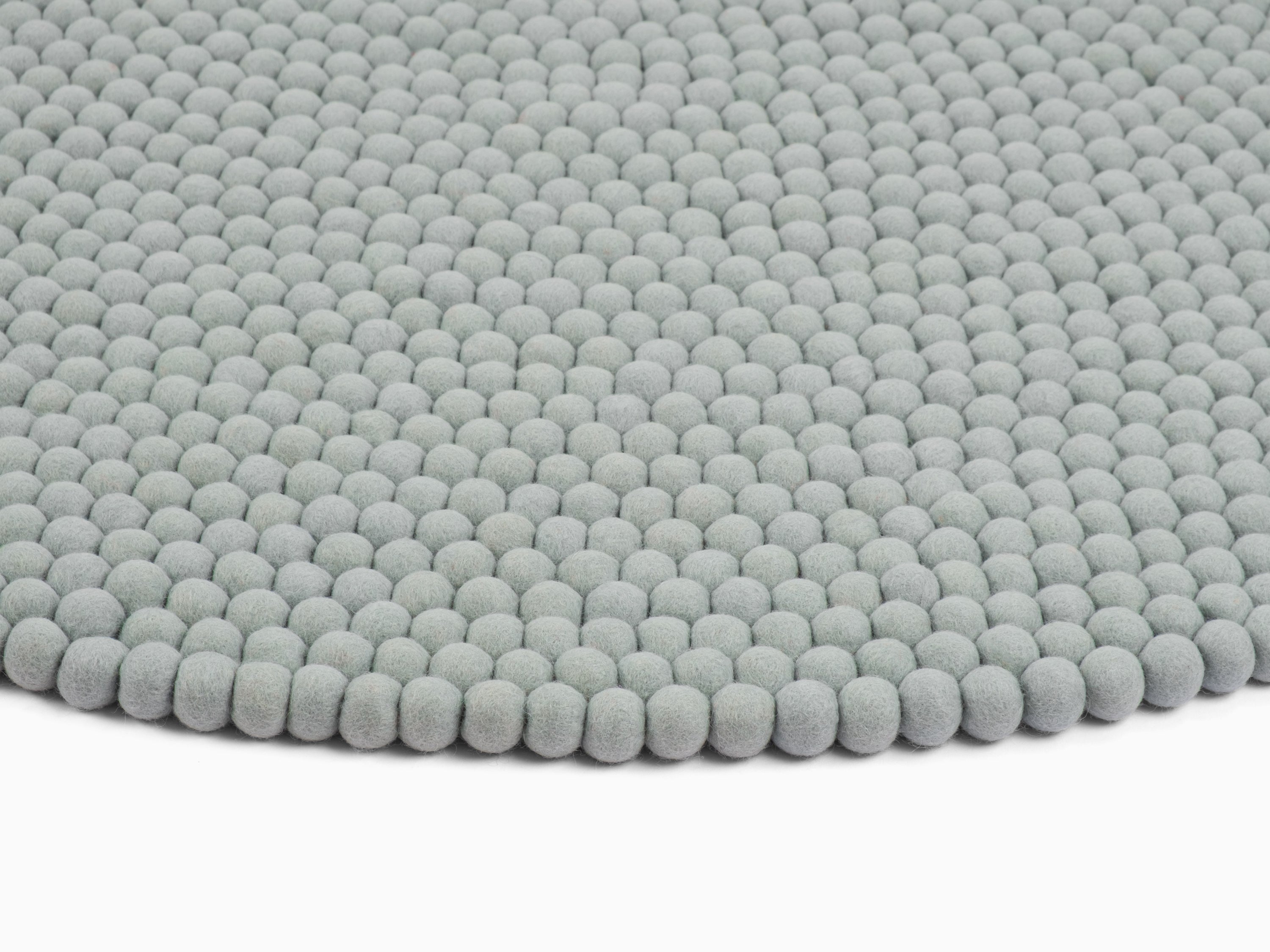 Tapis rond en boules de feutre, fabriqué en pure laine vierge.