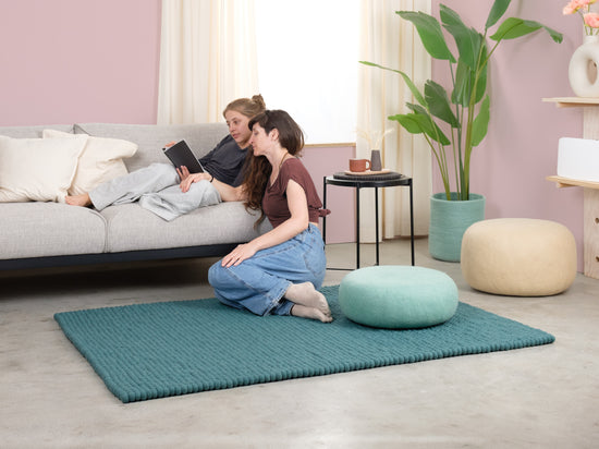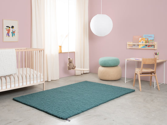 Noah est un tapis en boules de feutre d’un bleu pétrole profond. Puissant, clair et pourtant apaisant – comme pièce maîtresse ou base tranquille. Il s’accorde avec le bois clair, le béton et les tons neutres. Sensiblement doux, durable et facile d’entretien. Fait main au Népal en pure laine vierge à 100 %.