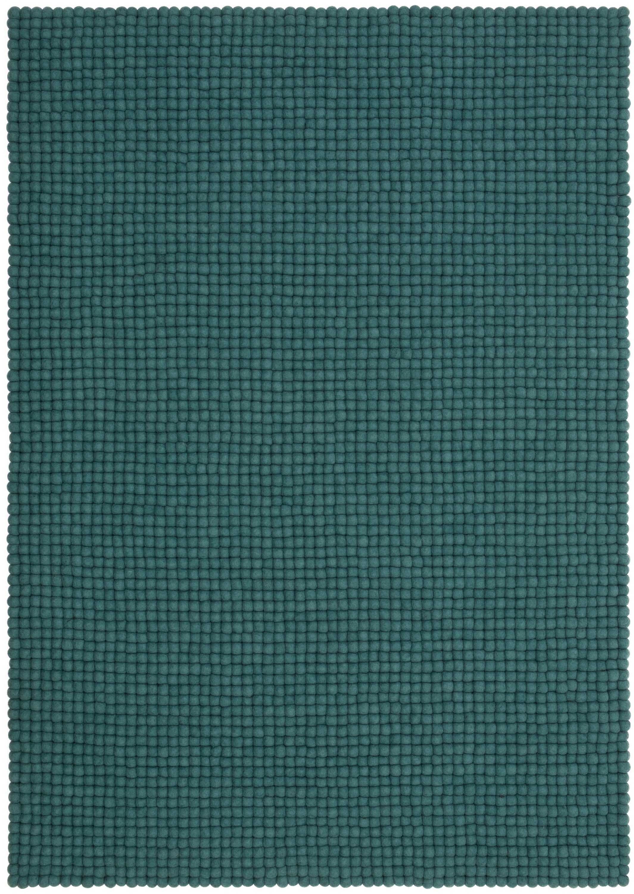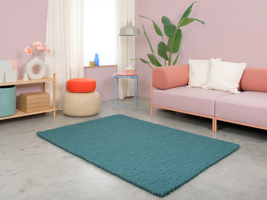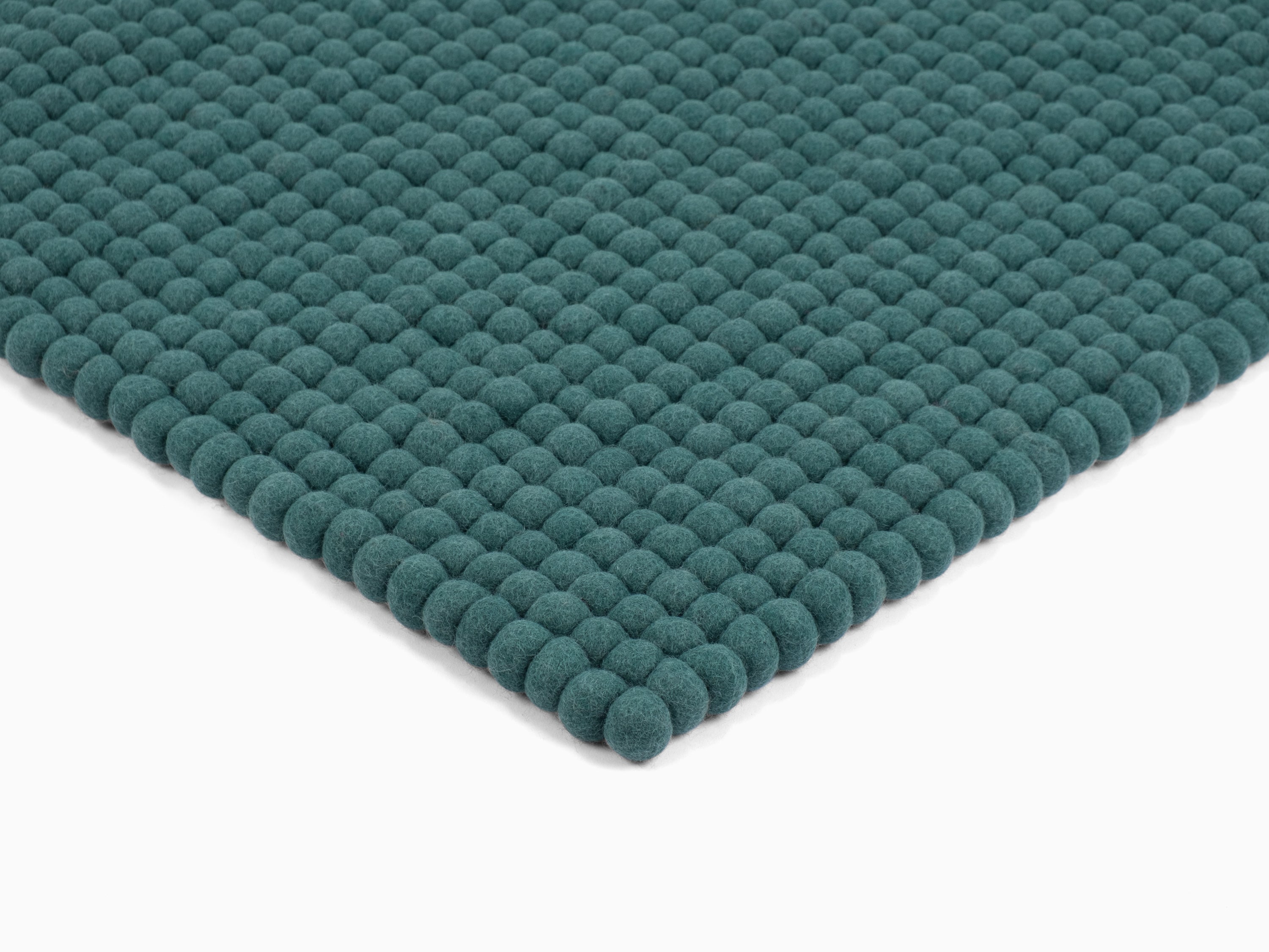 Tapis rectangulaire en boules de feutre, fabriqué en pure laine vierge.