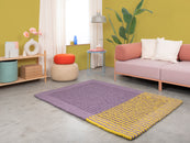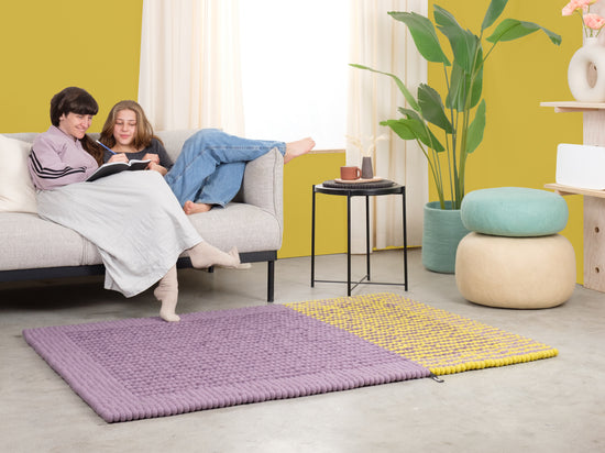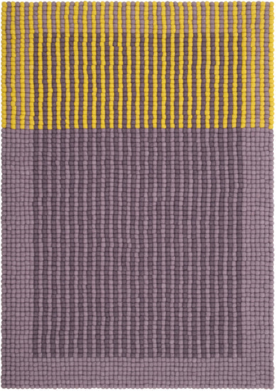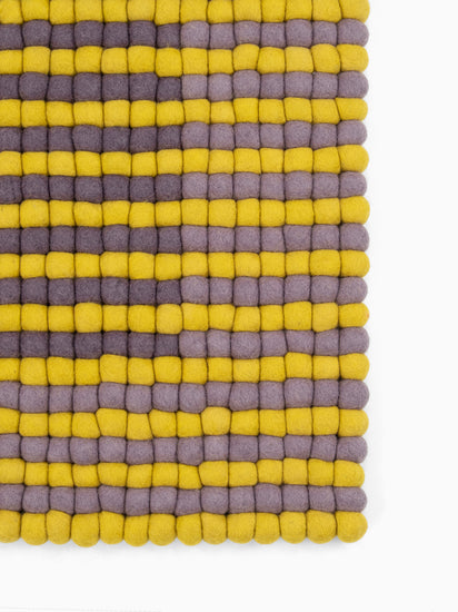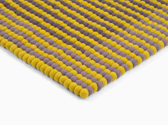 Tapis rectangulaire à boules de feutre, fabriqué en pure laine vierge.