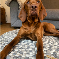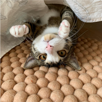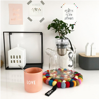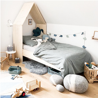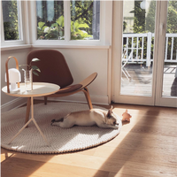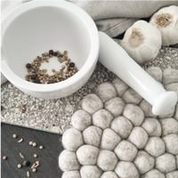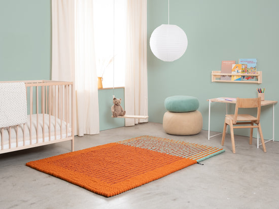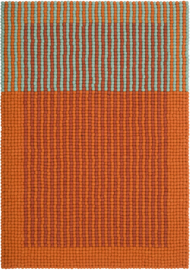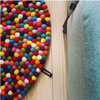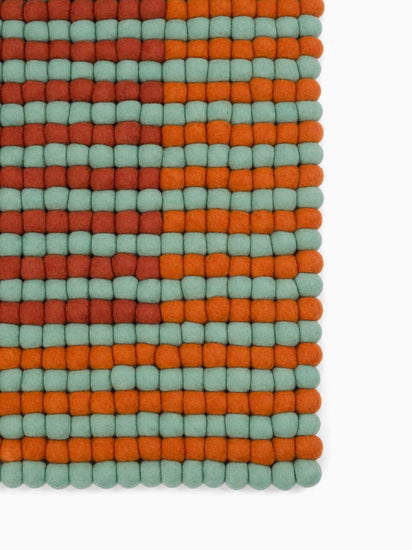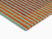 Tapis rectangulaire à boules de feutre, fabriqué en pure laine vierge.