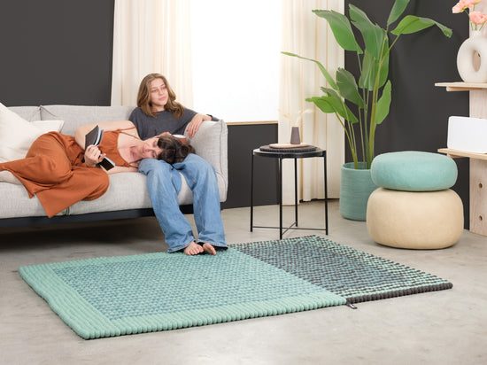 Des tons bleus froids mêlés à du gris pierre, avec une touche de vert sapin. Yukon évoque les paysages silencieux, les lacs glaciaires et le bleu profond du Nord. Un tapis qui respire la clarté – et invite au calme. Pour tous ceux qui veulent faire le vide.
