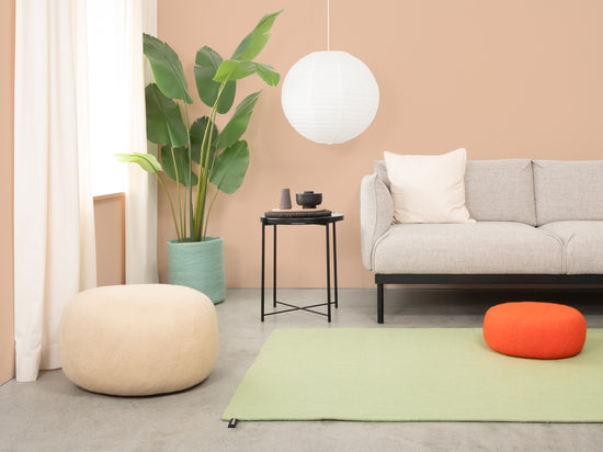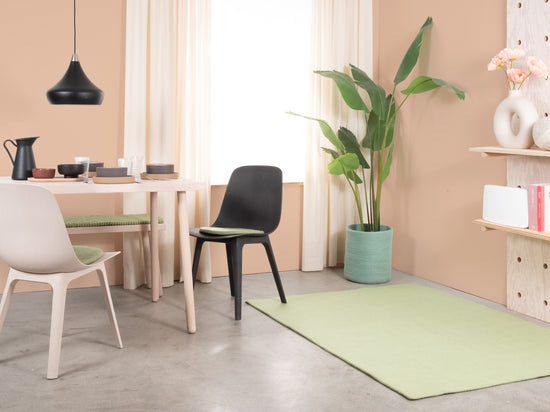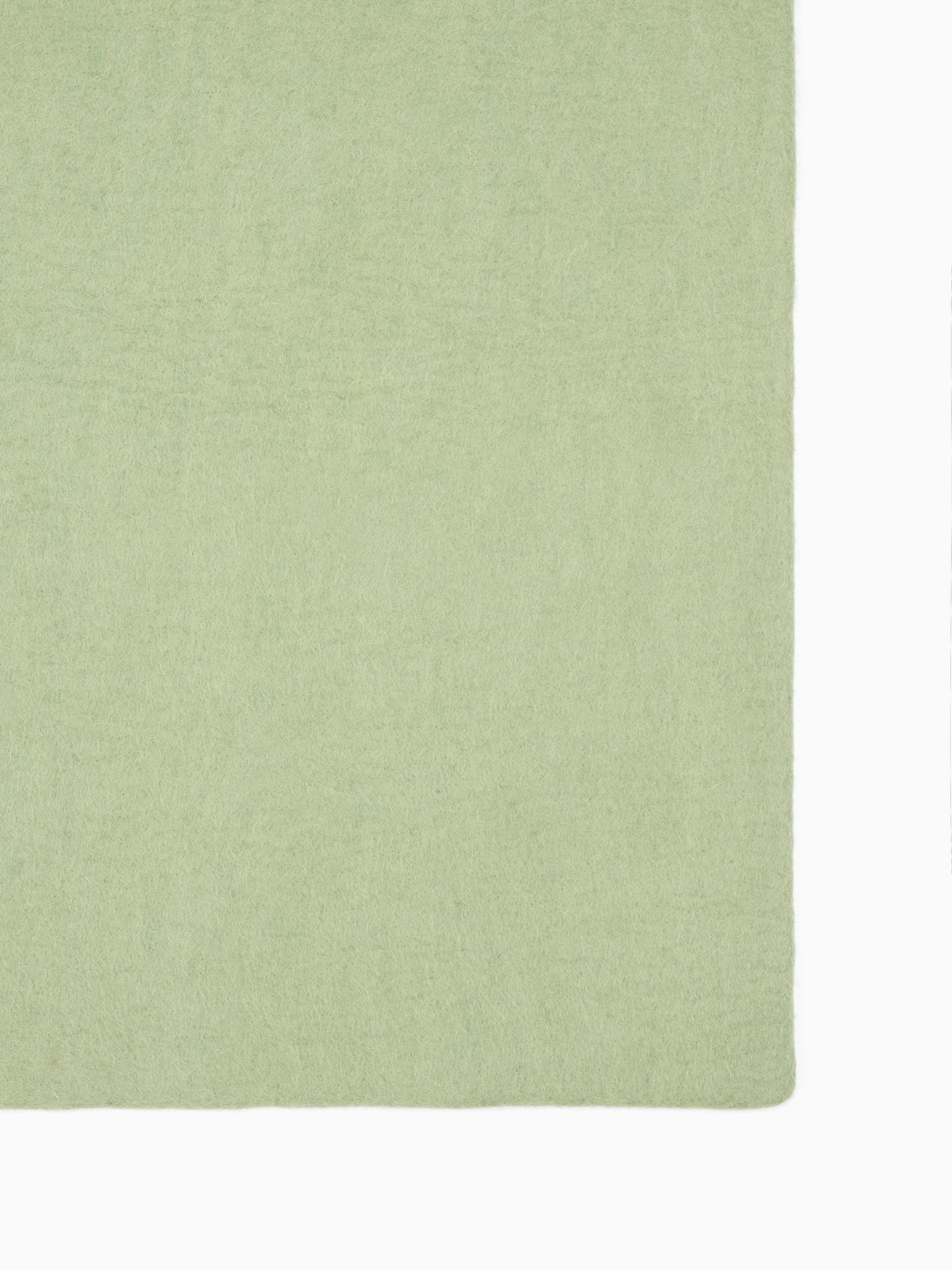 Lasse est un tapis en feutre d’un doux vert sauge. Il apporte calme et légèreté à la pièce et s’harmonise avec le bois, le blanc et les tons naturels. Doux sous le pied, robuste au quotidien et naturellement anti-salissures. Fait main au Népal en pure laine vierge à 100 %.