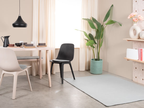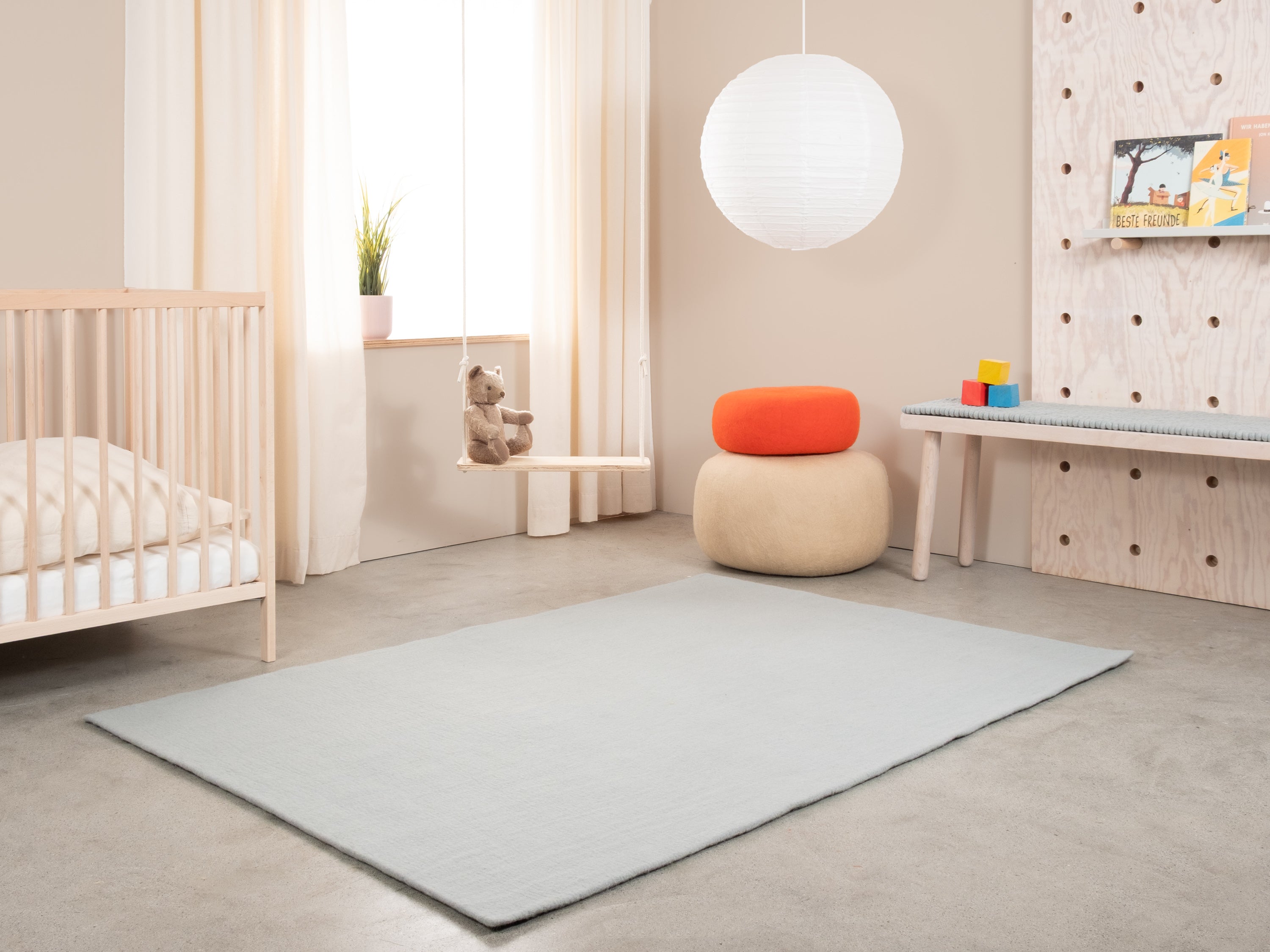 Liv est un tapis en feutre d’un bleu clair et frais. Il apporte clarté et légèreté à la pièce et donne l’impression que les petits espaces paraissent plus grands. S’accorde avec le blanc, le chêne et les tons neutres – comme base apaisante ou accent frais. Doux, absorbant le son et naturellement anti-salissures. Fait main au Népal en pure laine vierge à 100 %.