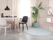 Liv est un tapis de feutre bleu clair et froid. Il apporte clarté et légèreté et agrandit visuellement les petits espaces. S’accorde avec le blanc, le chêne et les tons neutres – base apaisante ou accent frais. Doux, atténue le bruit et naturellement anti-salissures. Fait main au Népal en 100 % laine vierge.