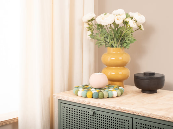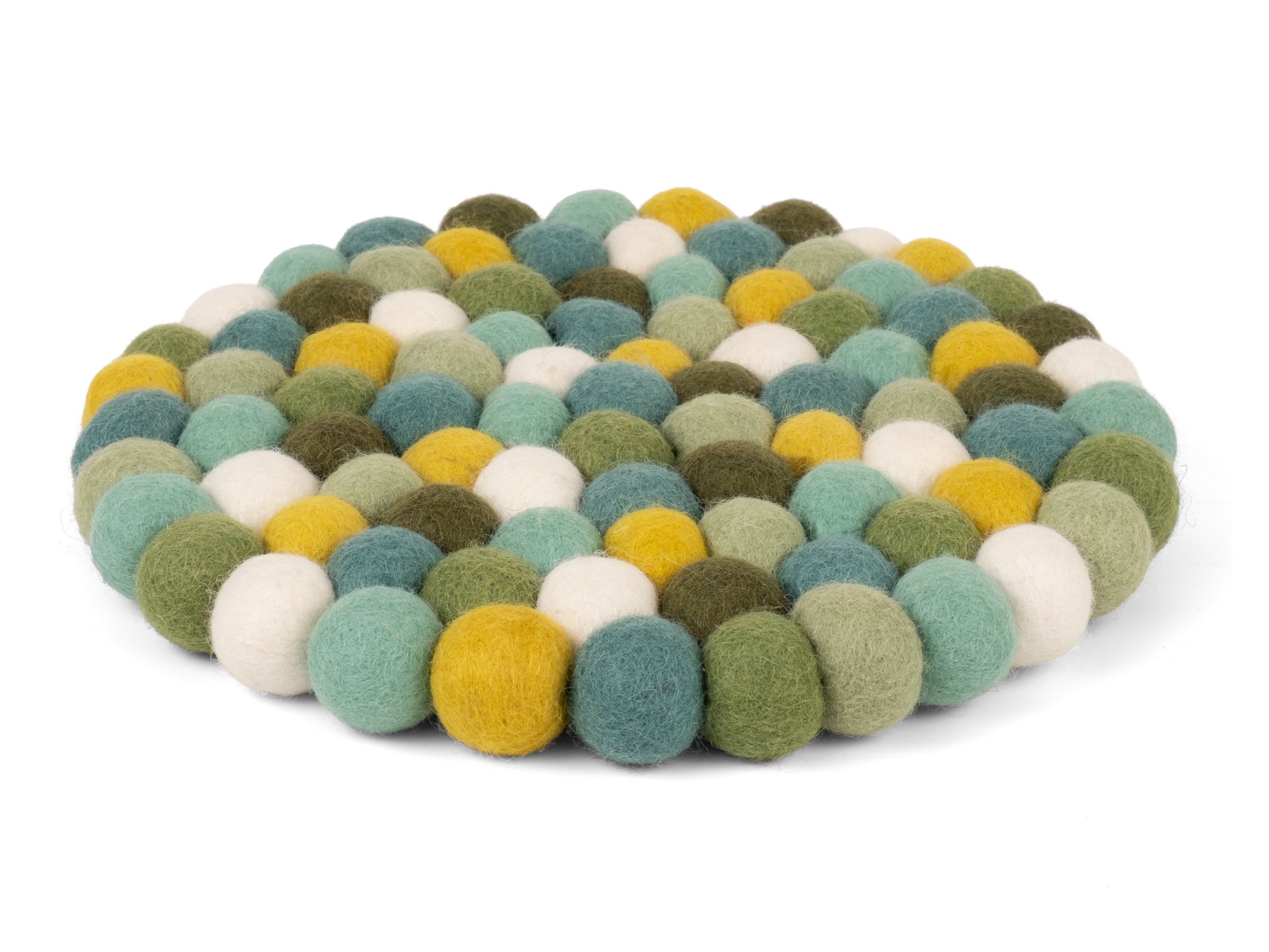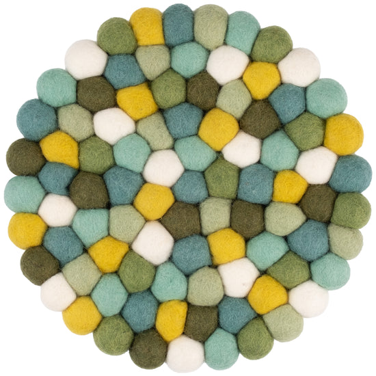 Dessous-de-plat rond multicolore vert / turquoise / blanc en pure laine vierge | myfelt