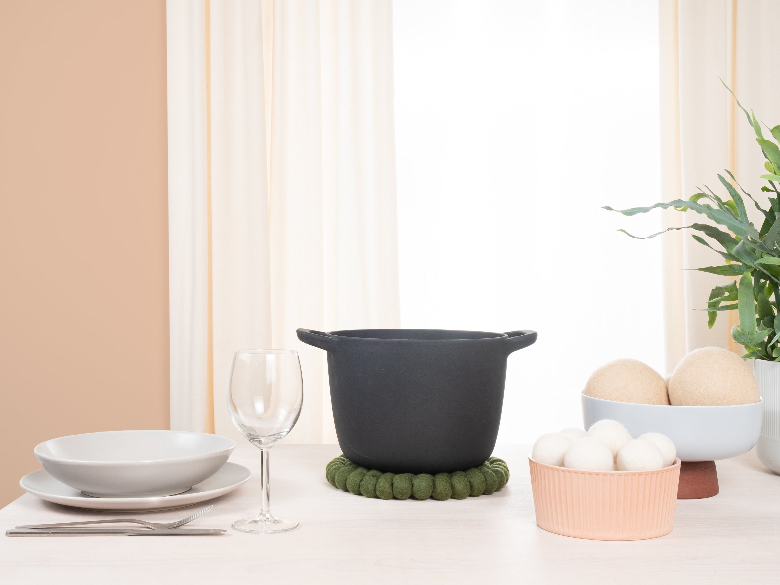 Dessous-de-plat rond vert foncé en pure laine vierge | myfelt