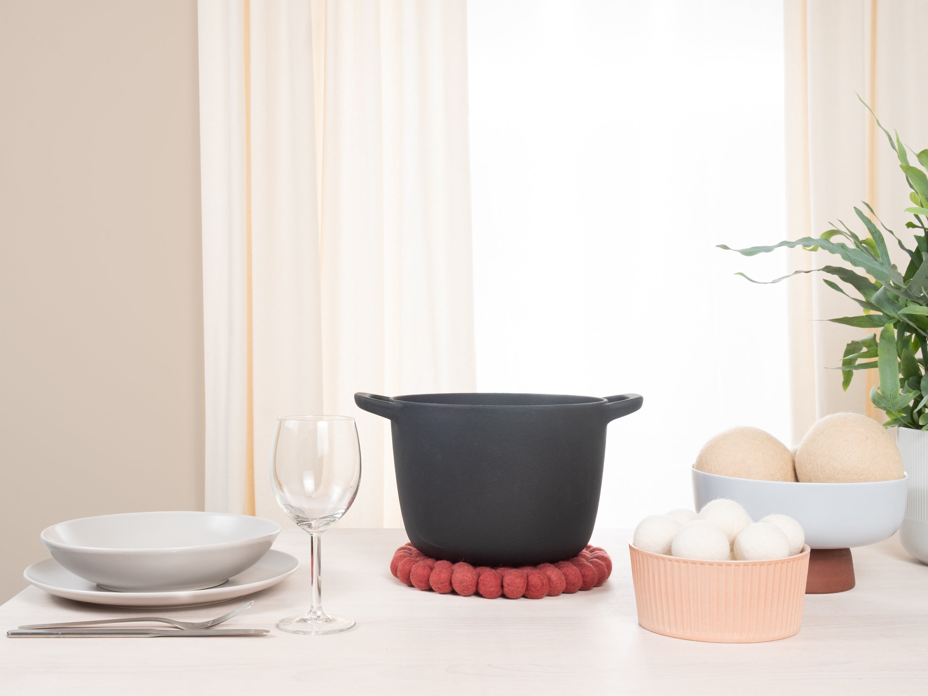 Dessous-de-plat rond bordeaux en pure laine vierge | myfelt