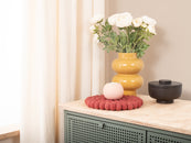 Le dessous-de-plat Kaja de couleur rouge vin allie fonctionnalité et charme. Robuste, résistant à la chaleur, hydrofuge et antisalissures, et réversible. Fabriqué en pure laine vierge, confectionné à la main au Népal dans des conditions équitables.