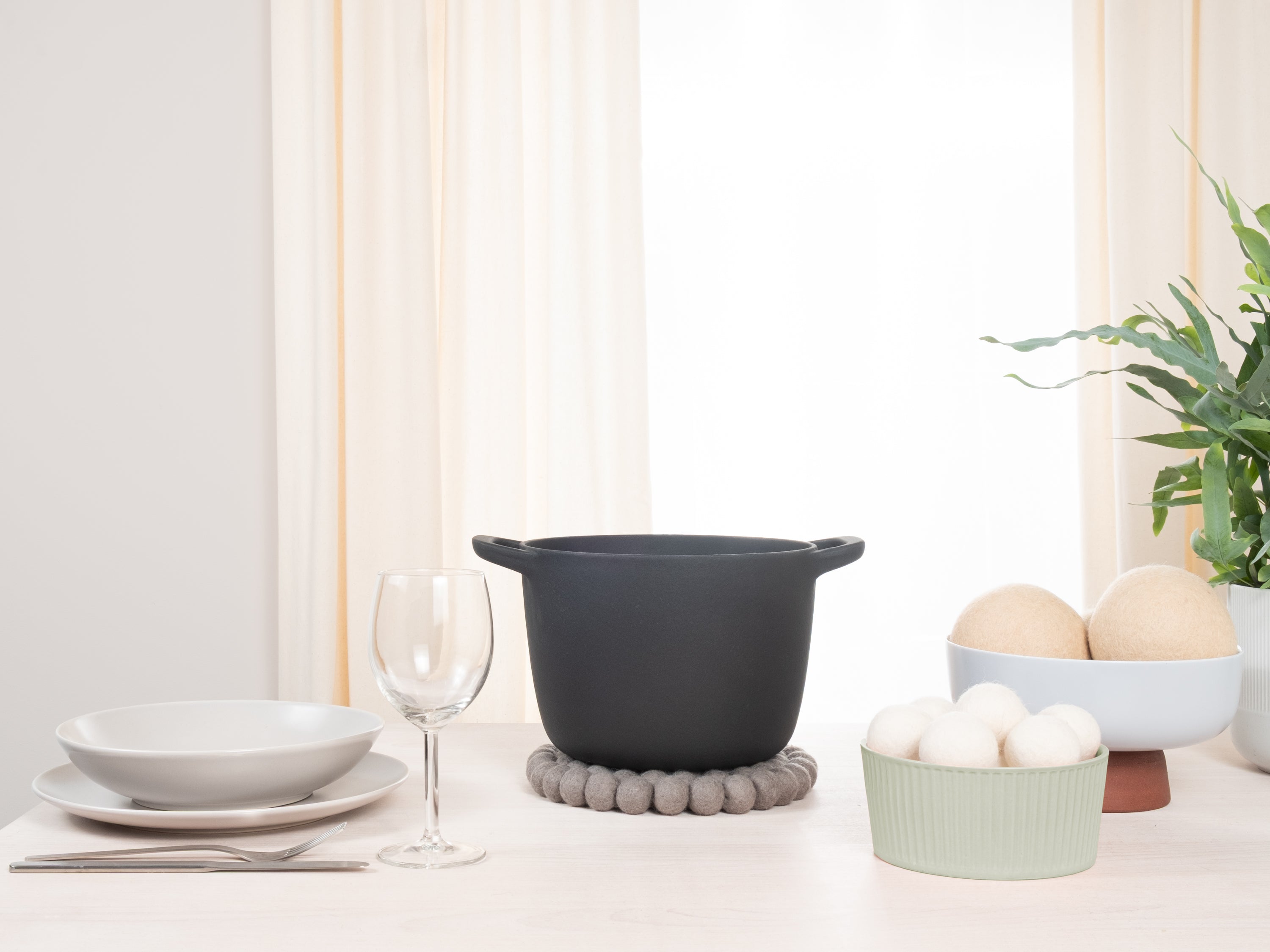 Dessous-de-plat rond gris en pure laine vierge | myfelt