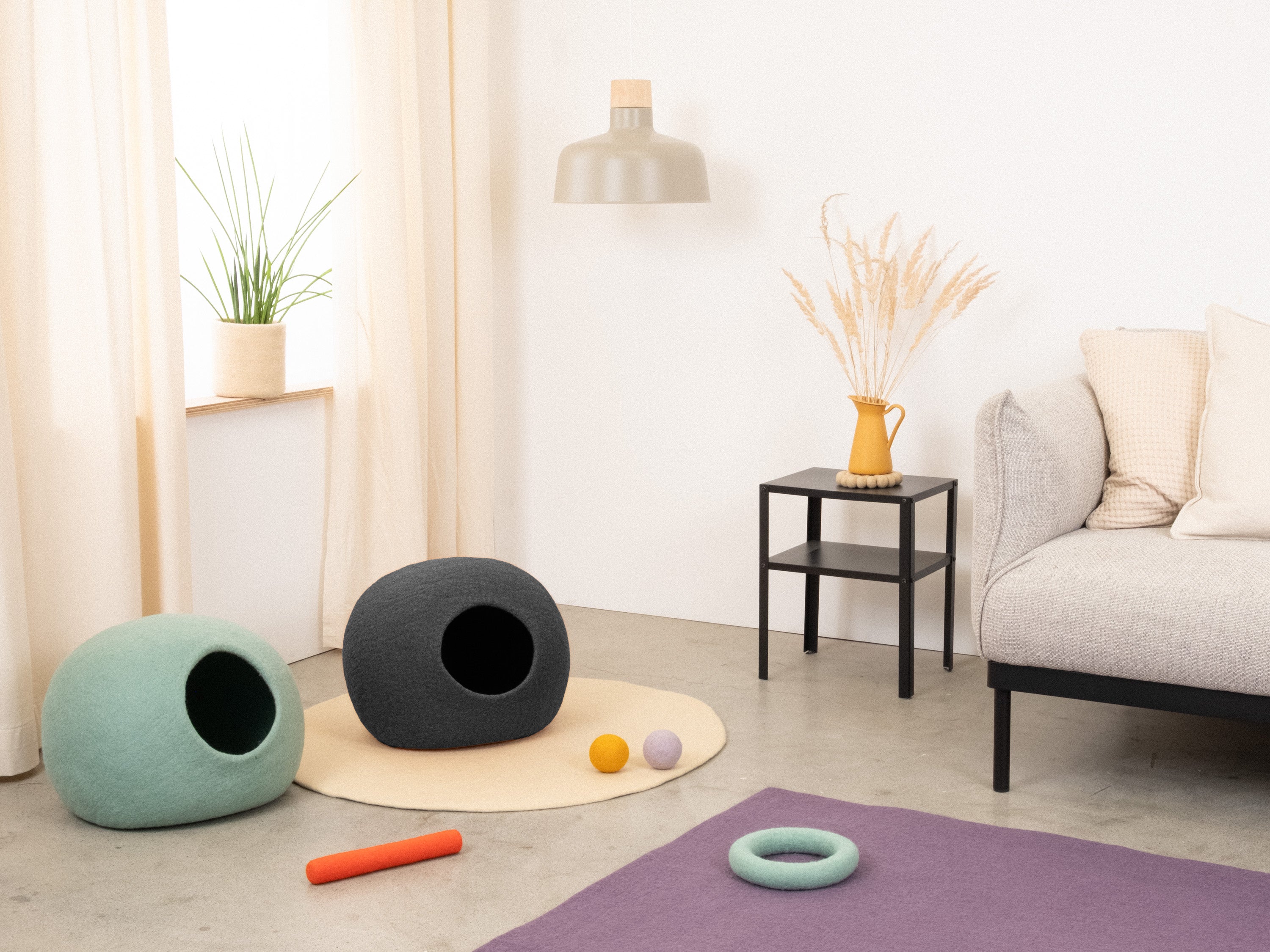 Dans la grotte fabriquée à la main en pure laine vierge, les chats, petits et grands, se sentent à l'aise et en sécurité. Le matériau durable est facile d'entretien, hygiénique et antibactérien grâce à la graisse naturelle de la laine. Le feutre de laine possède des propriétés antistatiques et régule la température. La grotte en feutre est chaude et confortable en hiver et agréablement fraîche en été.