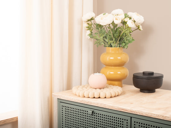 Dessous-de-plat rond beige en pure laine vierge | myfelt