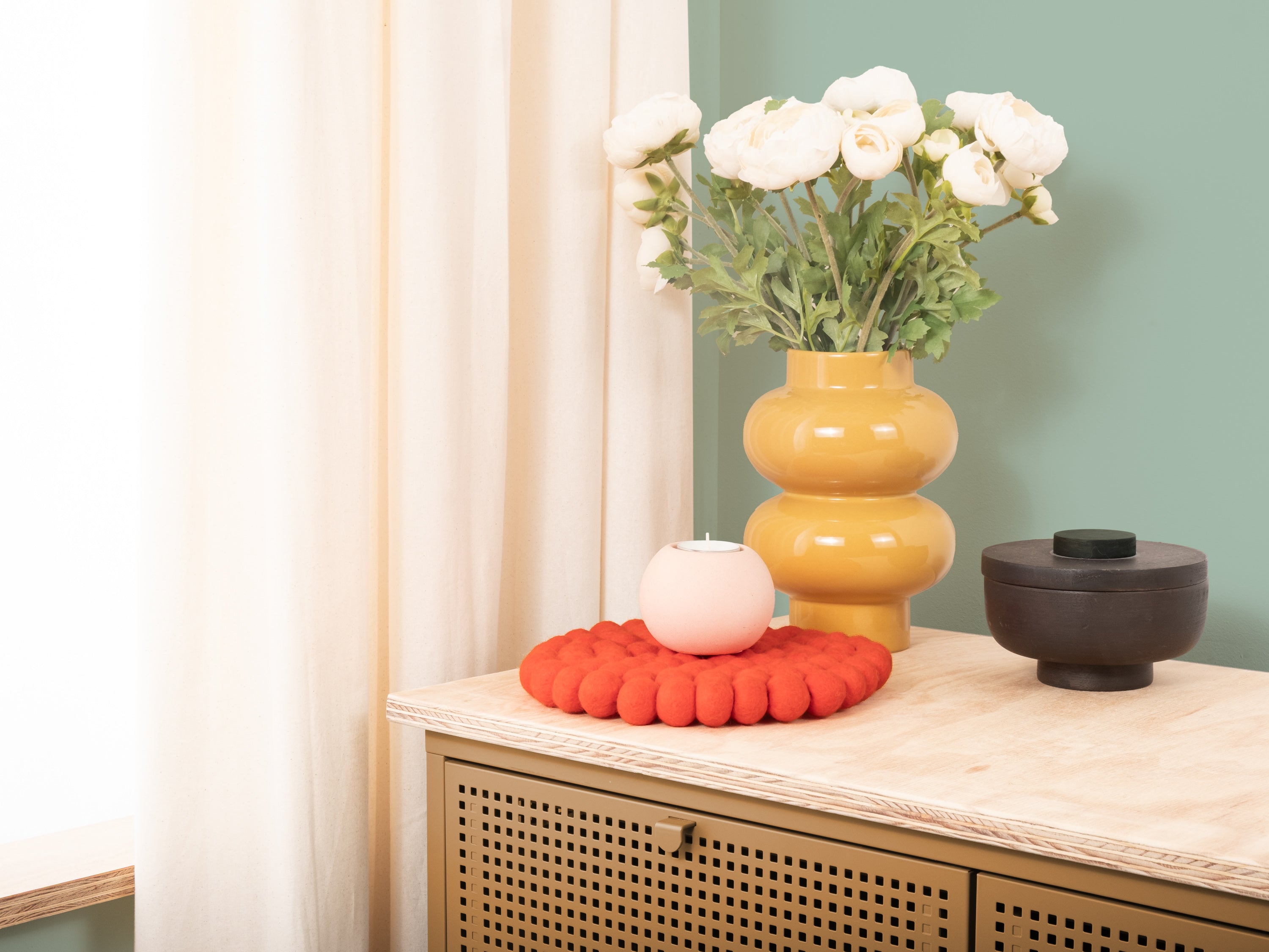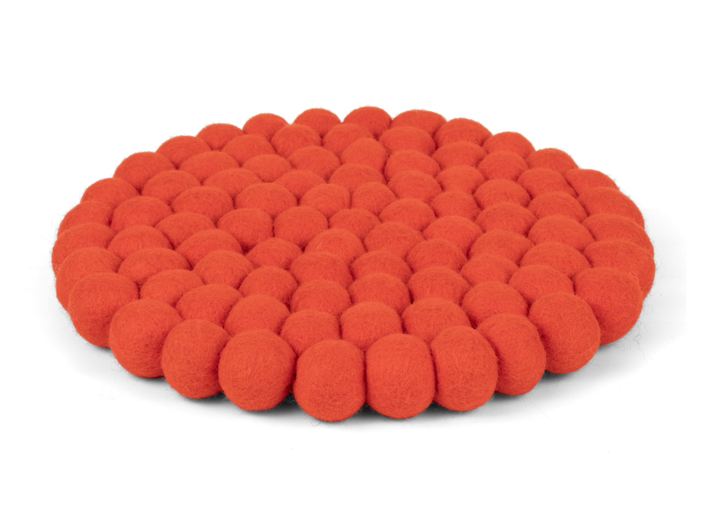 Dessous-de-plat rond rouge orangé en pure laine vierge | myfelt